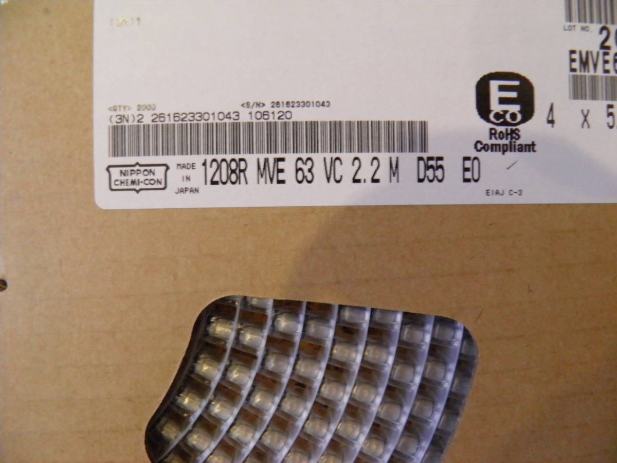 日本ケミコンの正規品、MVEシリーズ電解コンデンサ63V2.2uFが50本1組です。※写真の数量とは違います