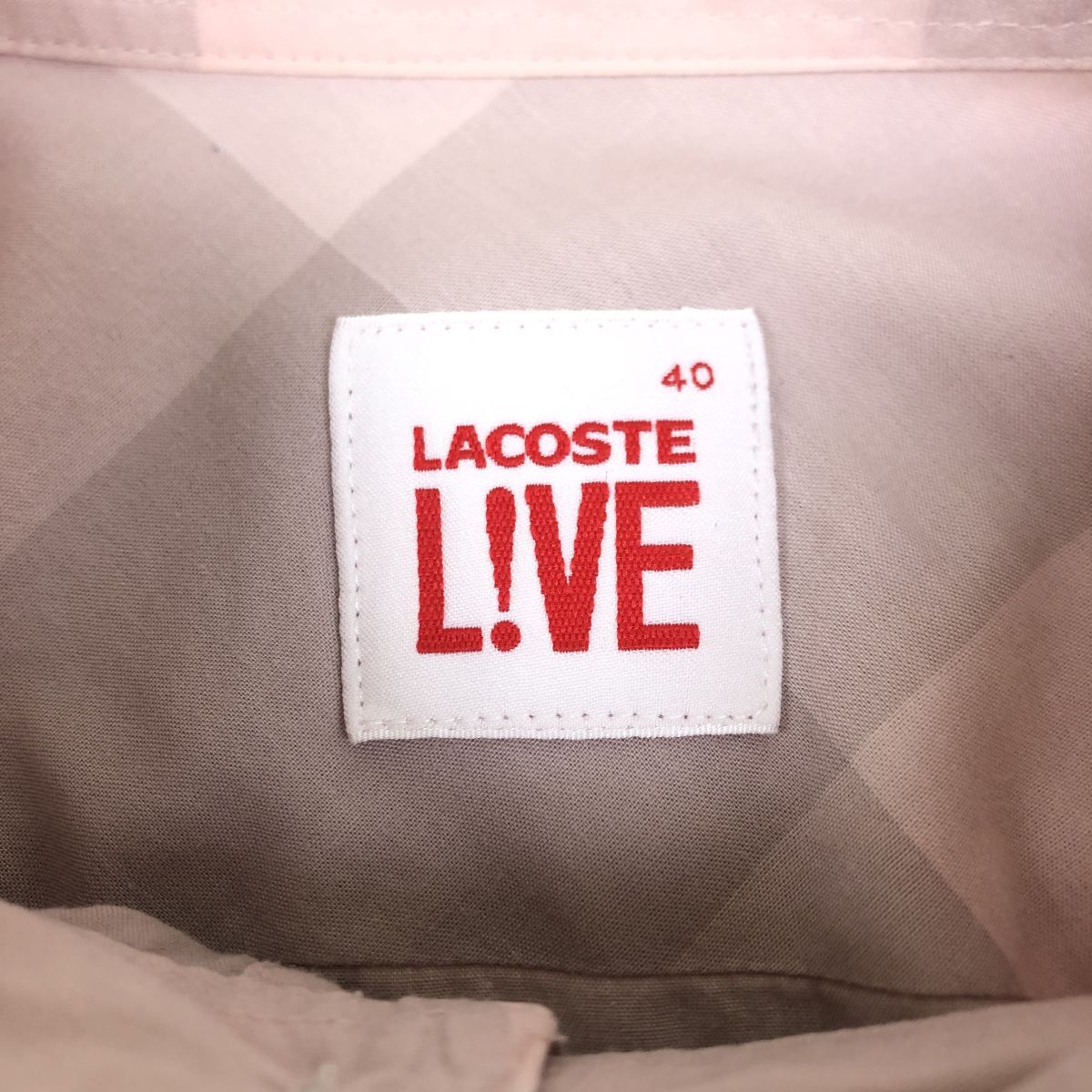 2N1933-Y-N◆LACOSTE L!VE ラコステライブ 長袖シャツ ブロックチェック 刺繍ロゴ 胸ポケット ノータック カジュアル ◆size40 ピンク 綿