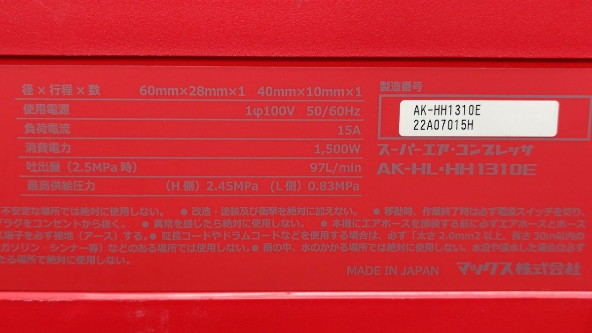 | TMO 11N22【中古】MAX 高圧コンプレッサー AK-HH1310E |
