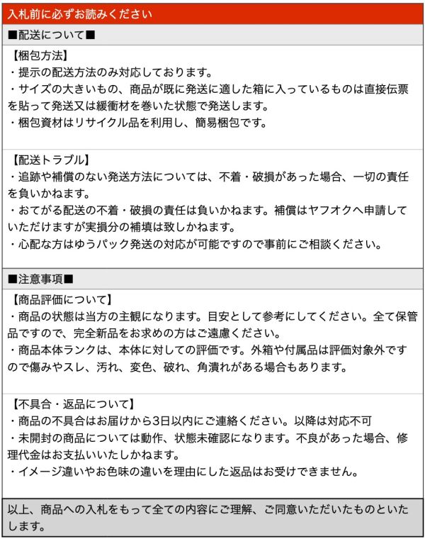 ●落札後の質問や要望はご遠慮ください。必ず落札前にお願いします。