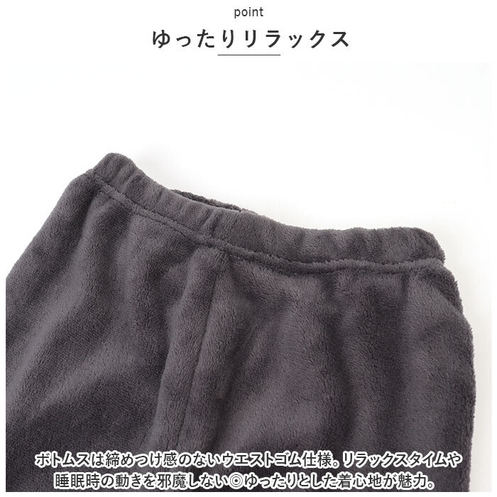 | 商品説明 | ・・もこもこ素材であったか過ごせる♪キッズ用ルームウェアが発売♪ ・【もこもこであったか】 ・フランネル素材を使用した、可愛いルームウエア。寒い季節でも優しく身体を包み込み、あたたかくしてくれる♪秋冬シーズンに大活躍! ・【セットアップ】 ・着るだけで、お家時間を可愛く仕上げてくれる、セットアップ仕様。上下セットなのも嬉しいポイント。 ・【ゆったりリラックス】 ・ボトムスは締めつけ感のないウエストゴム仕様。リラックスタイムや睡眠時の動きを邪魔しない◎ゆったりとした着心地が魅力。 ・【程よいフィット感】 ・裾と袖部分にはゴムが入っており、程よいフィット感で動きやすいのもポイント。 |