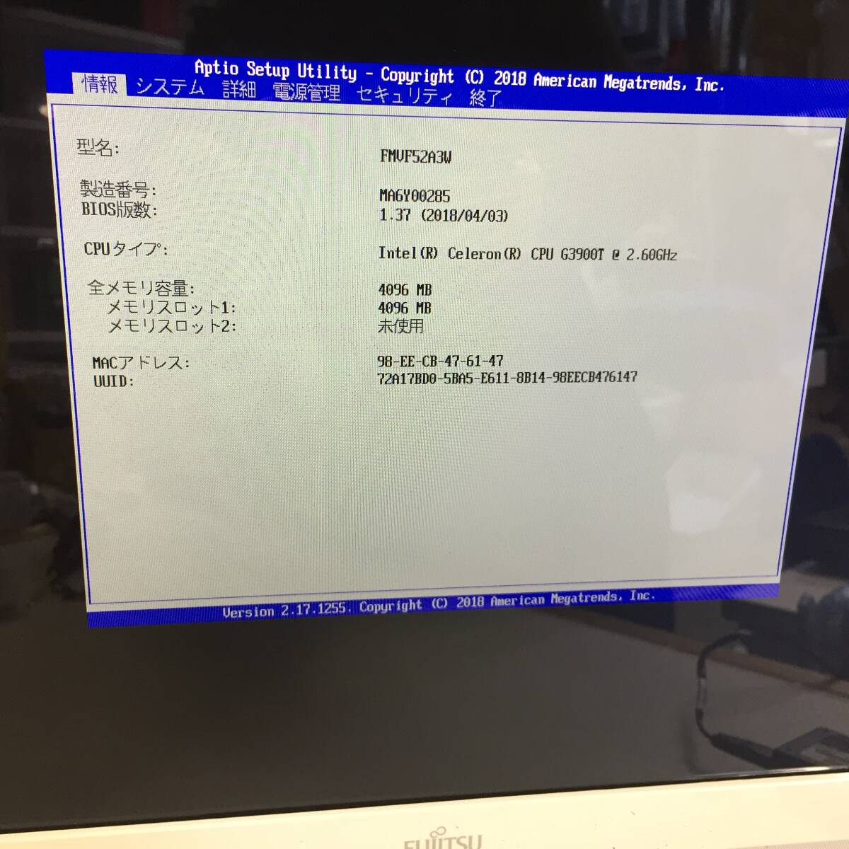 パソコンの知識がある方や清掃や修理メンテナンスの出来る方への出品となります。現状渡しに動作保証はありません。※ 中古の商品です。 中古品のため使用感や経年劣化、細かいキズや汚れ等があります。 シール跡やペン跡があるので格安出品です。 内部にほこりを吸い込んでいます。 内部の清掃はしていませんので、現状でのお渡しになります。 清掃前提で落札して下さい。 ※入手した商品から破損処理を施されたHDDを取り外しただけの状態です。 ※本体/キーボード/マウス/ACアダプターを同時に入手してキーボードを使って動作確認しました。ワイヤレスキーボードで電源の入り切り、F2キーでのBIOS表示ができました。マウスは動作未確認です。 簡易チェックで大まかな外観とBIOS表示のみの確認です。 パーツの有無等は画像でご確認ください。 CPU Celeron G3900T 2.60GHz メモリ 4GB ( 4GB× 1枚) HDD なし マウンタフレームのみ(取付けネジ付属) 付属品 同時に入手して動作確認に使用したキーボード&ACアダプターをオマケでお付けします。マウスも付きます。 動作確認後にキーボードの電池は取り外しました。マウスも同様です。 ※申し訳ありませんが新規評価の方の入札をお断りさせて頂きます。 入札があった場合、削除させていただくことがあります。※ | ||||