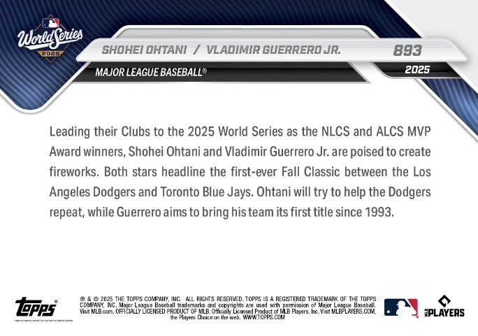 大谷翔平(Shohei Ohtani)/ゲレイロ JR. 2025 MLB TOPPS NOW Card #893 - NLCS,ALCS MVP ※ドジャース(DODGERS)