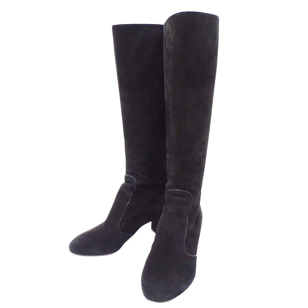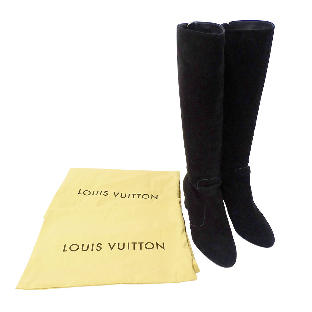 | 商品名 | ルイ・ヴィトン LOUIS VUITTON ブーツ レディース ブランド スエード ブラック ゴールド金具 サイズ37.5 24cm ロングブーツ 無地 シンプル |