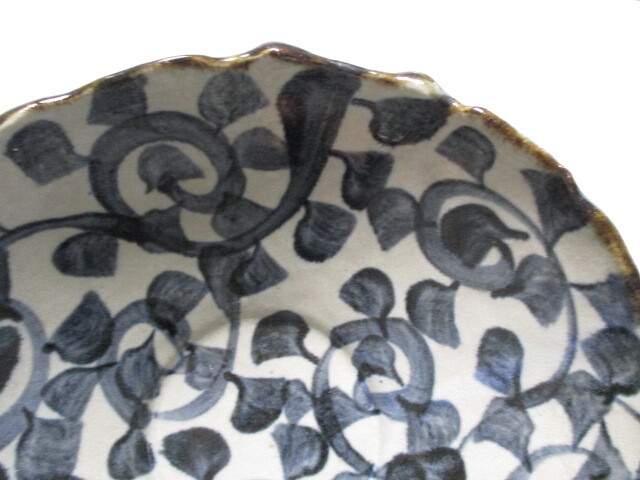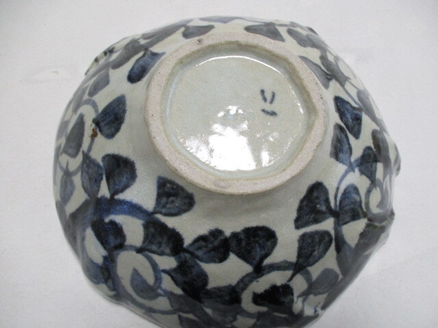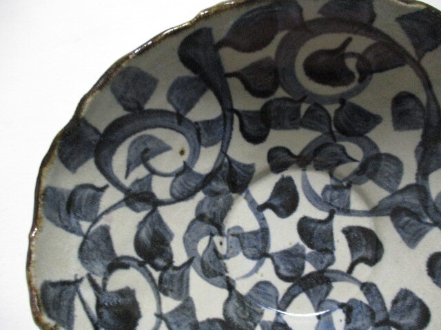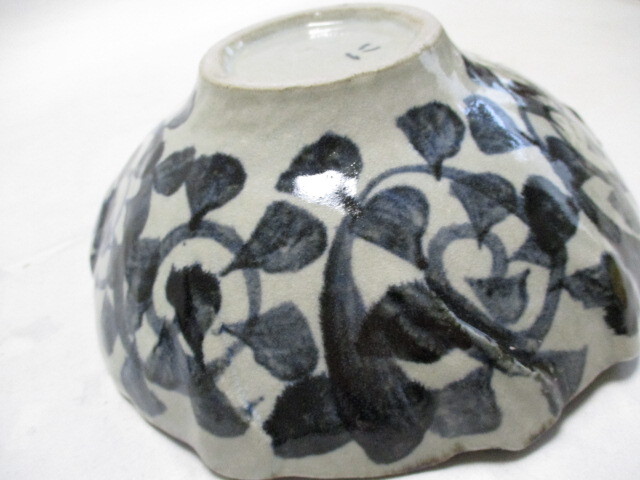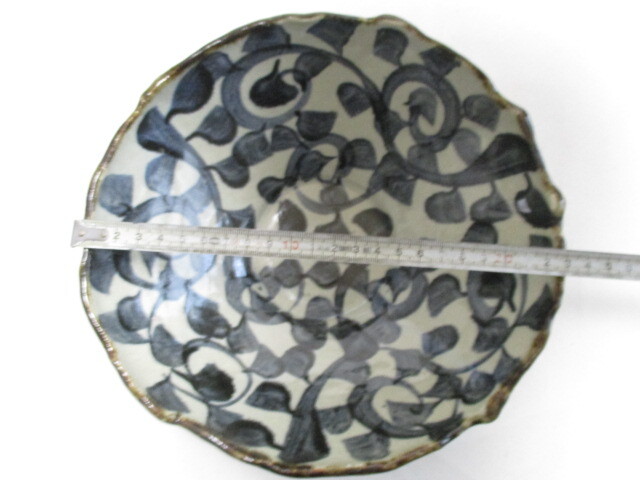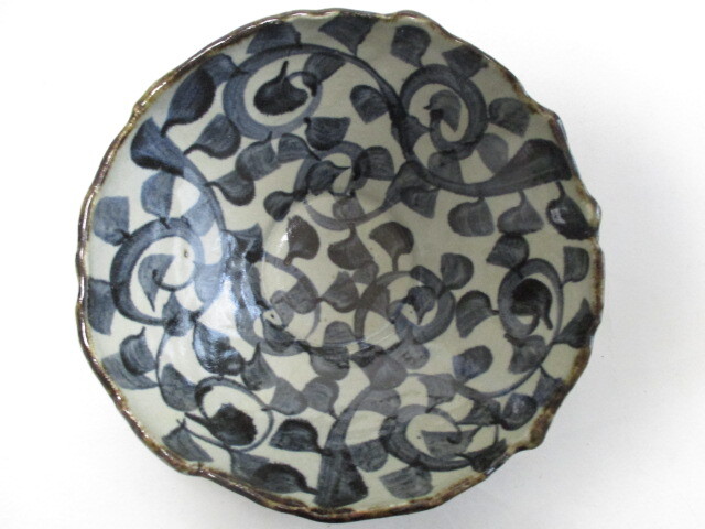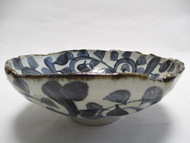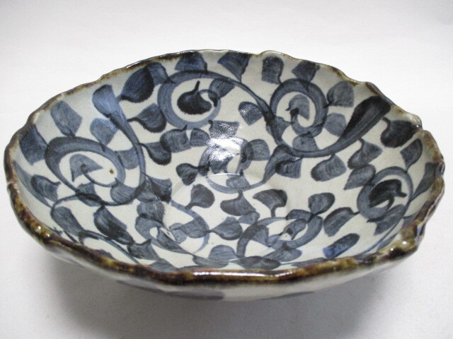 和陶器 織部 手描き 染付蛸唐草 変形大鉢 23.5cm 1個 大鉢