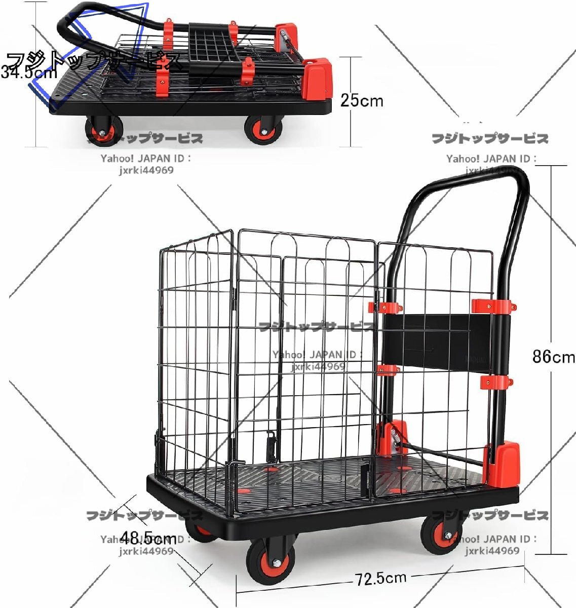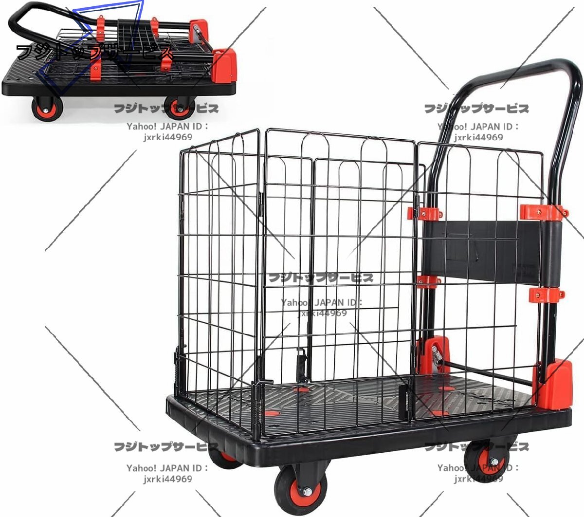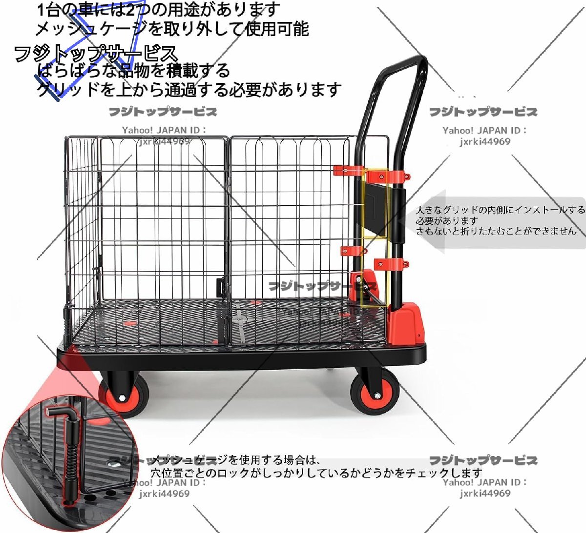 大容量台車 折りたたみ式カート台車網籠車耐荷重150kg フェンス車積載運搬車 黑