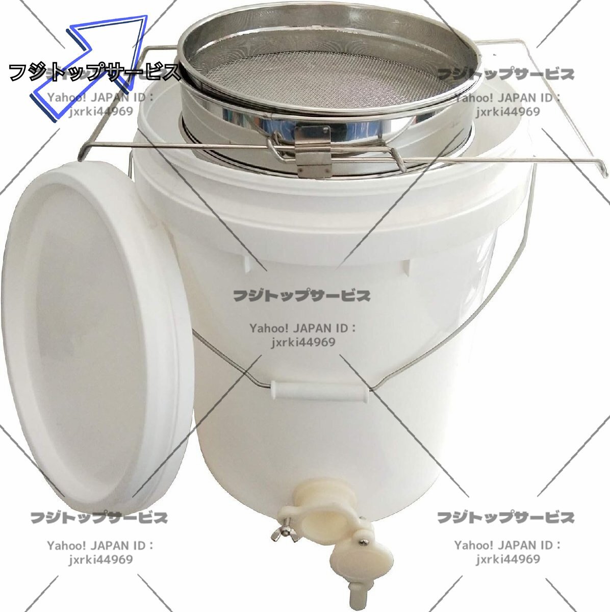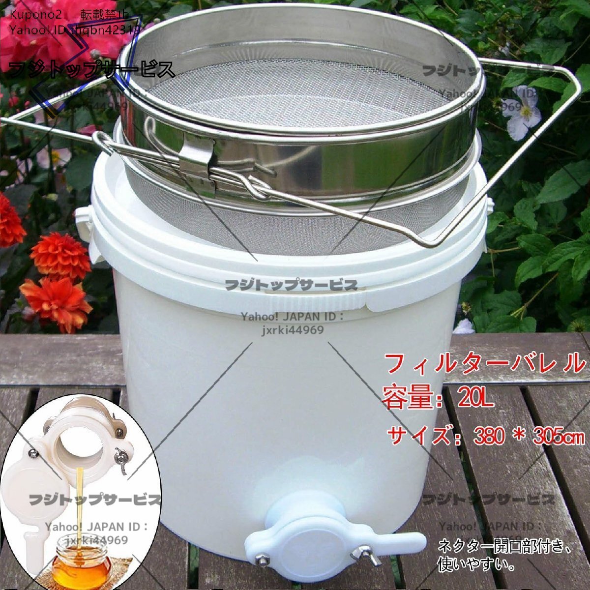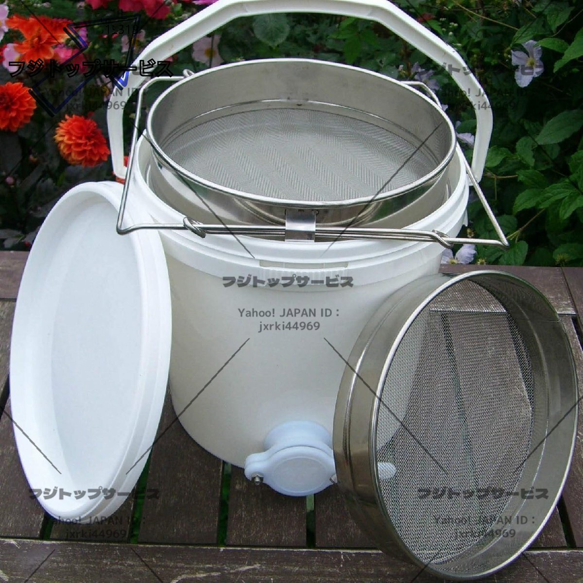 養蜂 器具 蜂蜜 こし器 ワックス はちみつ ろ過器 2重ステンレス ブラシ ふるい 園芸 20Lポリ 容器付き