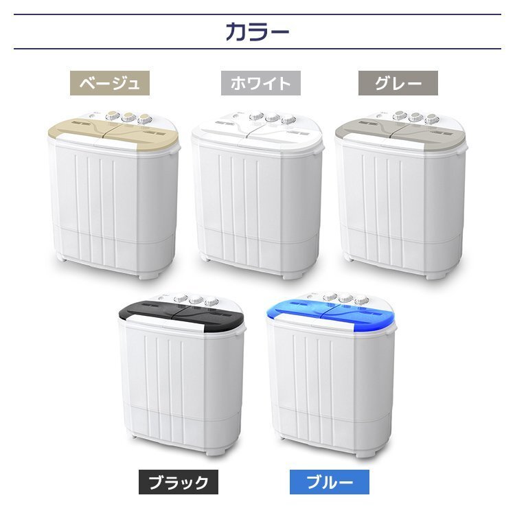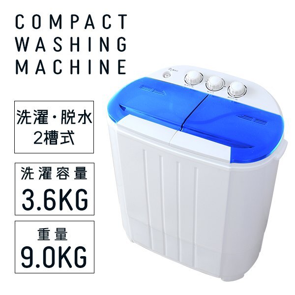 | コンパクトだから場所も取らずにちょこっと洗いで節水もできます。 少量の洗濯物や洗い分けに最適! 二槽式だからしっかり洗えてしっかり脱水可能! ★こんな場合にオススメ!★ ・ガーデニングや作業で汚れた軍手やエプロンの洗濯 ・学校や部活動で汚れたシューズや服の下洗い ・ベビー用衣類の洗濯 ・海水浴後の水着の洗濯 ・別洗い用のサブ機として 【商品仕様】 カラー:ホワイト×ブルー サイズ:(約)幅550×奥行360×高さ590mm 重量:(約)9000g 洗濯容量:3.6kg 電源:AC100V 50/60Hz 定格電力:洗濯:240W 脱水:120W 防水性能:IPX4 【商品内容】 本体 脱水用おさえさえフタ 吸水ホース 【注意事項】 ・本製品の脱水は、簡易脱水となっております。あらかじめご了承ください。 ・水がこぼれても大丈夫な風呂場やベランダなどでのご使用をオススメします。 ・分解や修理・改造をしないでください。 ・保管する時は、風雨にさらされる場所や湿気の多い場所に置かないでください。 |