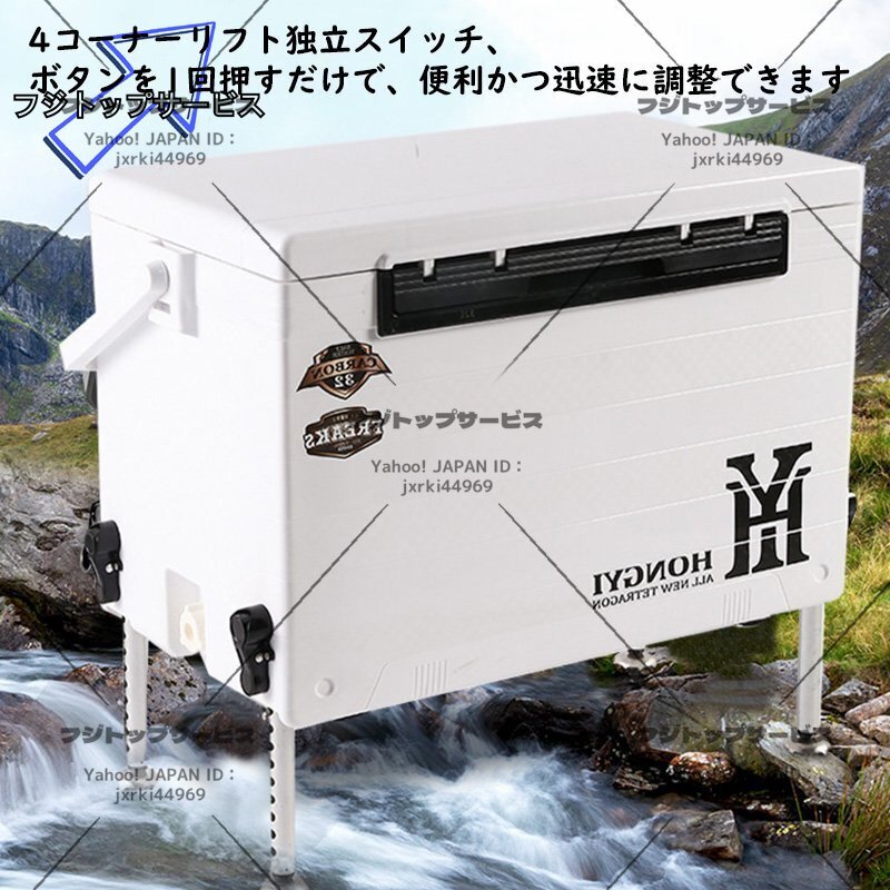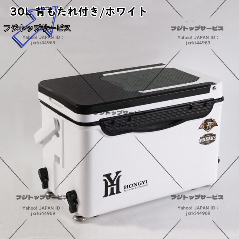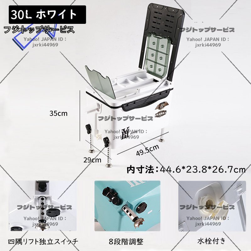 釣り用クーラーボックス 多機能30L 座れる頑丈ボディ 保温保冷 ハンドル/釣りエサ箱/背もたれ/水栓付き 釣り 防水 高さ8段調整可 ホワイト