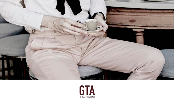 1955年、イタリアのセルバッツァーノでパンツ専業ファクトリーとして創立したモーダ社。 1999年から、ファクトリーオリジナルブランドとして『GTA(ジーティーアー)』をスタートさせます。 美しいシルエットと穿き心地抜群のパターンフィットにより、世界的に確固たる地位を築いたGTAのパンツは、 半世紀にわたる長い歴史に裏打ちされた高い技術力をベースに、今もなおモダンでクリエイティブな イタリアントラウザースを提案しています。