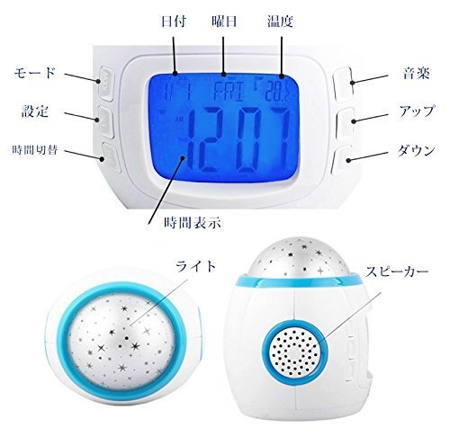 目覚まし時計としては勿論のこと、 ・プロジェクション機能搭載 ・ヒーリングミュージック機能搭載 ■機能一覧■ 1.目覚まし時計 ※輸入品のため基本的に日本語説明書は付属しません。 |