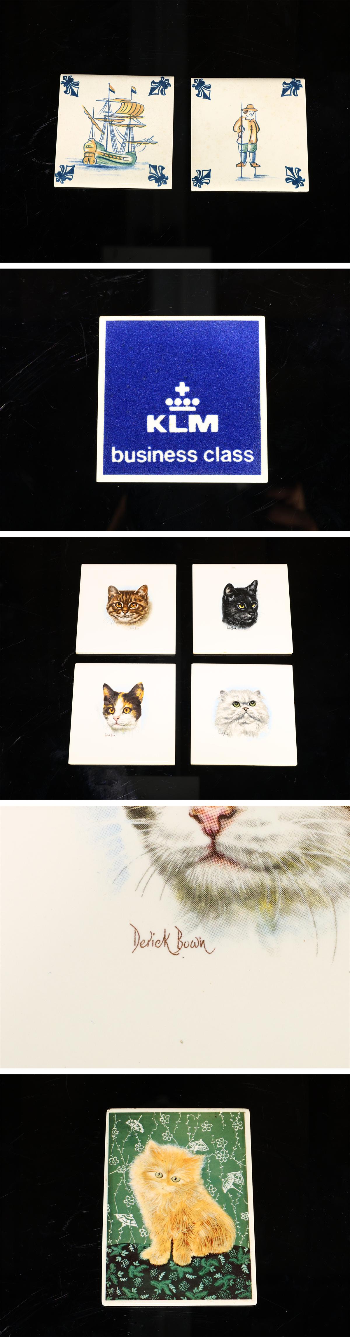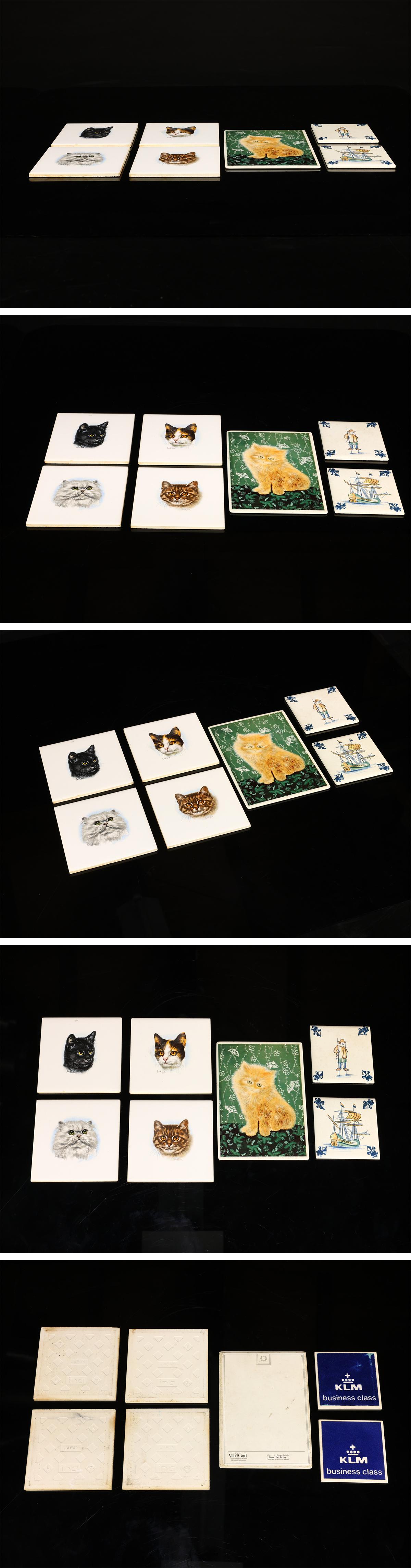 久1147 時代 陶器 猫 人物 南蛮船 アートタイル 壁掛け 7枚 一括出品