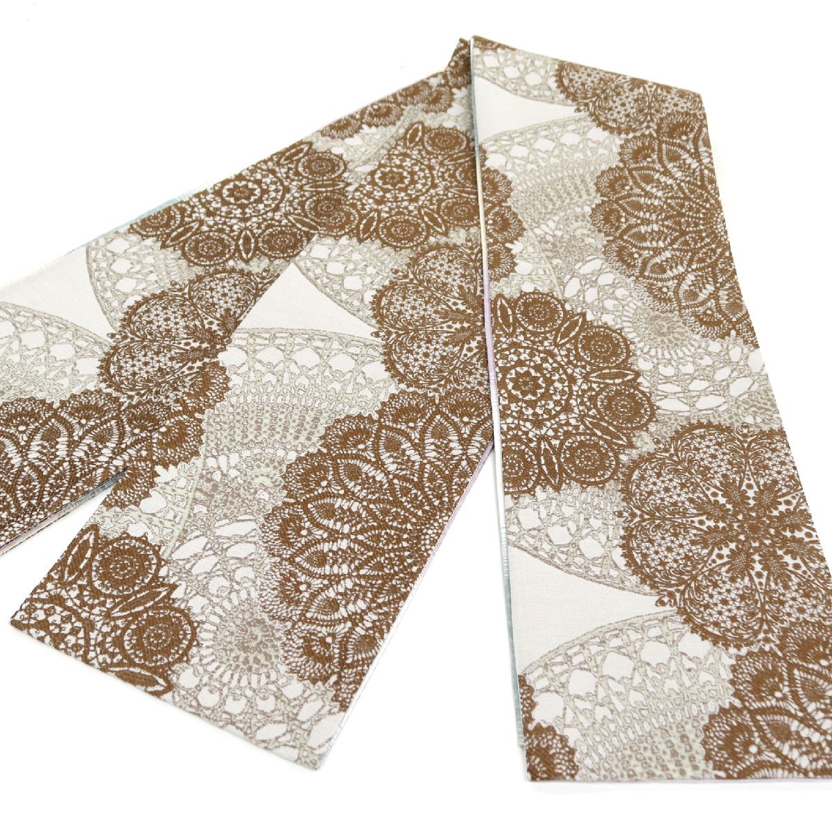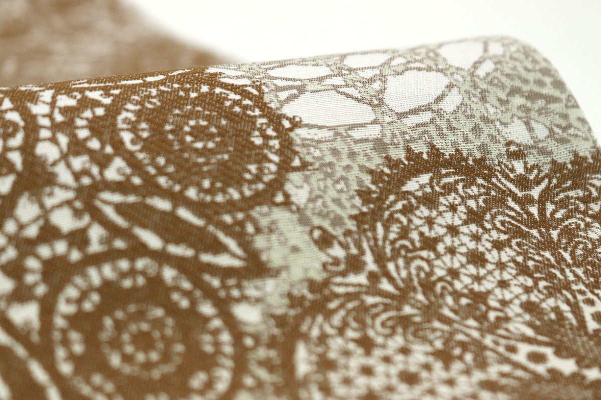 全体には、焦げ茶色のお色目でレース模様が織り上げられておりま。