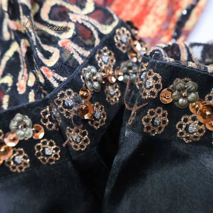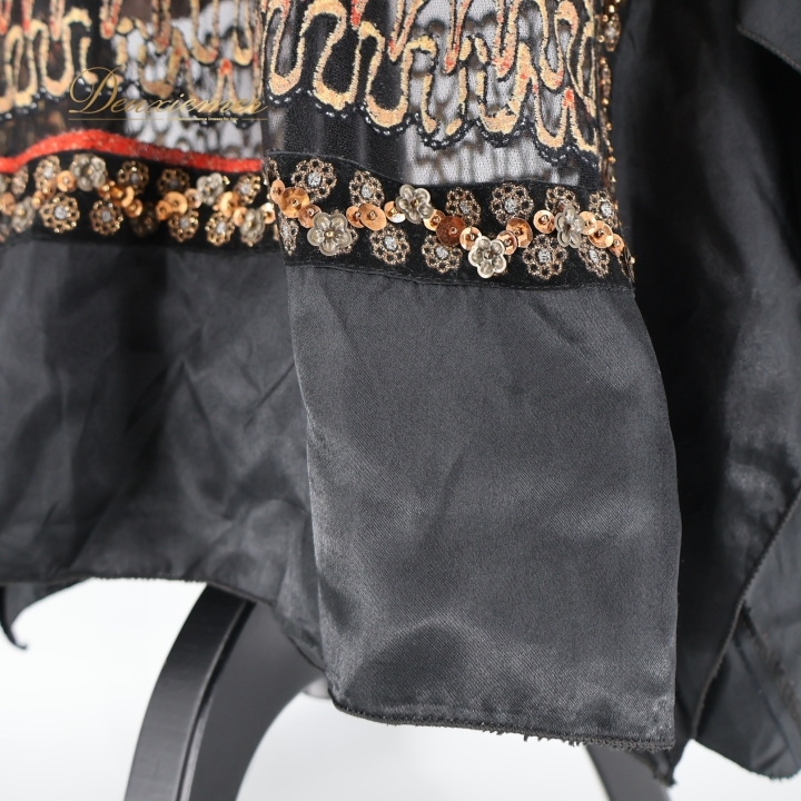 | 裾と肩にほつれ有り。 袖に補正有り。全体的に毛羽立ち有り。 スパンコール取れている箇所有り。取れかけ有り。 ラインストーン全体的に細かな傷が付いております。 使用品となりますので、小傷、擦り傷、小汚れなどはご了承ください。 モニターの発色により実際と異なる場合があります。 |