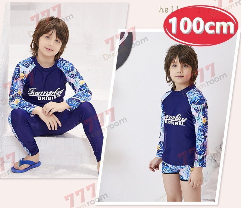 ラッシュガード 3点セットアップ【100cm】子供服 男女 レギンス 長袖 ズボン 日よけ 海 プール swi-115