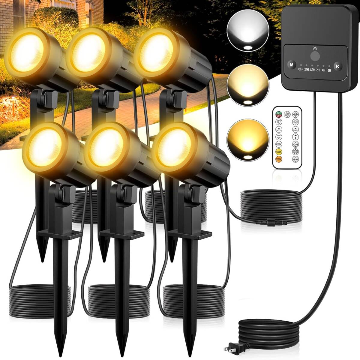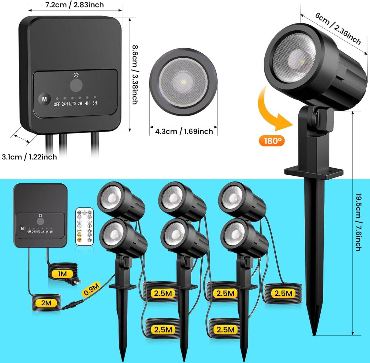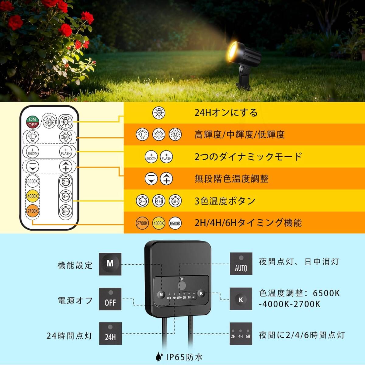 | MEIKEE ガーデンライト6灯直列コンセント式 ブラック リモコン付 2700K 4000K 6500K 3色切替 3段階調光 明暗センサー 自動点灯消灯 2/4/6Hタイマー機能 常時点灯可 メモリー機能 IP66防水 安定照明 省エネ 連続点灯可能 180度角度調整 スポット 庭園 屋外 玄関 車道 芝生 防犯対策 | |