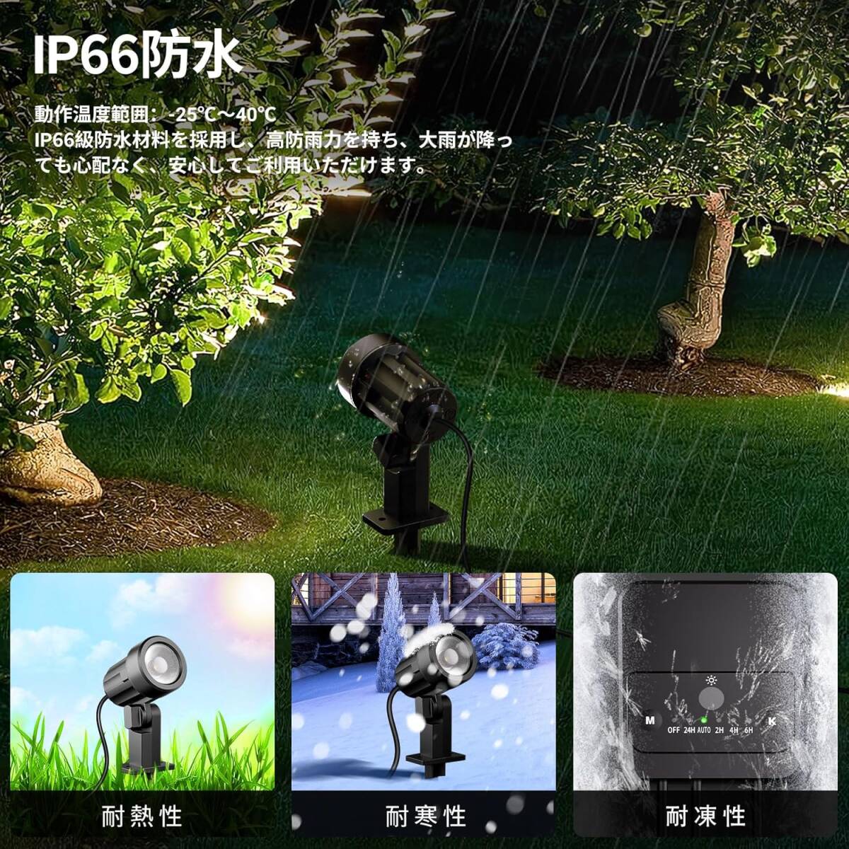 | 商品説明 | MEIKEE ガーデンライト6灯直列コンセント式 ブラック リモコン付 2700K 4000K 6500K 3色切替 3段階調光 明暗センサー 自動点灯消灯 2/4/6Hタイマー機能 常時点灯可 メモリー機能 IP66防水 安定照明 省エネ 連続点灯可能 180度角度調整 スポット 庭園 屋外 玄関 車道 芝生 防犯対策 ブランド:MEIKEE カラー:ブラック サイズ:長さ22.8×幅15.7×高さ18.1cm 付属品:リモコン 電源コード長:各ライト間最大2.5m 色温度:2700K 4000K 6500K(3段階切り替え) ※6灯直列です。 リモコン操作&6灯式ガーデンライト&3色切替 リモコン操作で簡単に、2700K暖色光、4000K昼白色、6500K昼光色の3色切替が可能。 庭の雰囲気や植物の色味に合わせ、最適な光色を選べます。 3段階調光機能で、明るさも自由にコントロール。 木々を優しく照らすソフトな光から、玄関先を明るく演出するハイパワーな光まで、シーンに応じて使い分けられるため、庭園照明としての表現の幅が広がります。 自動的に点灯/消灯&タイマー機能 面倒な操作は、一切不要。 明暗センサー搭載により、日没とともに自動で点灯、夜明けに自動で消灯するため、日々のオンオフ作業から解放。 2H/4H/6Hタイマー機能付きで、就寝時間に合わせて自動消灯させる省エネ運用も可能。 常時点灯モードも備えており、ライフスタイルや省エネ志向に合わせた、最も効率的な使い方ができます。 可変的取り付け方法&防犯照明 地面に挿し込むほか、壁などに固定することができ、2WAYで使用可能。 プラグが付いているので、木陰の下でも使用出来、安定性があります。 ライトヘッドは、上下最大180°まで調節でき、個々の位置合わせが可能。 パティオ、庭、玄関、芝生、通路、階段、車道などの屋外の照明やセキュリティに最適。 IP66防水&耐久性に優れる IP66級防水材料を採用し、高防雨力を持ち、大雨が降っても心配なく、安心して使用できます。 庭の光を湿気やほこりから保護し、安定した耐久性を維持。 ランプ本体のグリッド構造は、耐腐食防水ABS材質外殻採用。 隙間がない一体型で、雨の浸透を防ぎ、ランプ本体と空気との接触面積を増加させ、内部から外部へ熱を輸送。 仕様&省エネ&安心保障 明るさと省エネ性を両立した、省エネ設計のLED採用。 長時間の点灯でも、消費電力を抑え経済的。 芝生ライトとして、庭を美しく照らすだけでなく、玄関先や車道を明るく照らすことで、夜間の安全確保と防犯対策としても高い効果を発揮。 新品にて所有、撮影のみです。 |