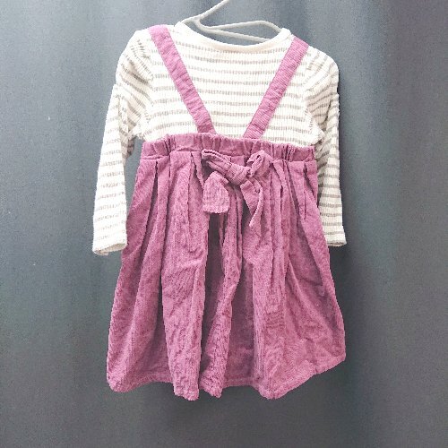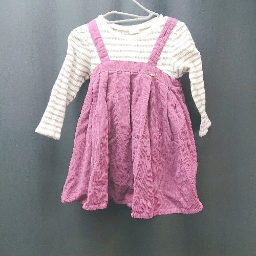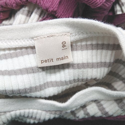◇ Petit Main ベビー用 ボーダー柄 コーデュロイ生地 リボン 長袖 ロング ワンピース サイズ90 パープル レディース E