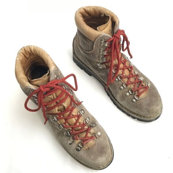 ◆商品説明◆ | ◆SIZE:9・1/2(日本サイズ28.0程度) ※採寸は画像をご確認お願い致します。 正確な製造年月は判別できませんでしたが、3段のビブラムソールの印字やブーツの形状などから少なくとも80年代以前の品ではないかと推察されます。 詳しい事がわからず知識不足で恐縮ですが、画像をご確認お願い致します。 ずっしりと重い重厚な本革が使用されており、大変希少なトレッキングシューズです。 | ||||||||||||||||||||
