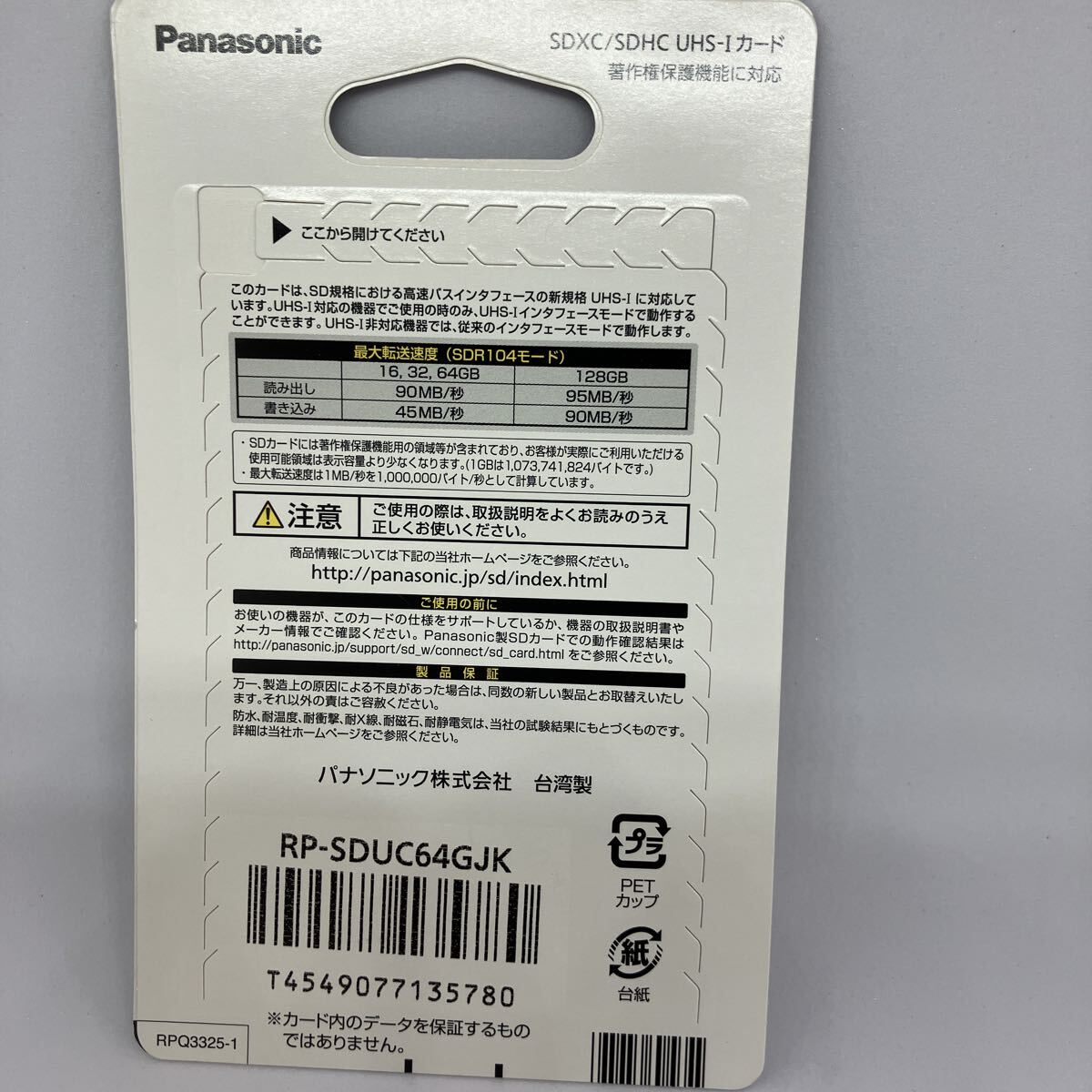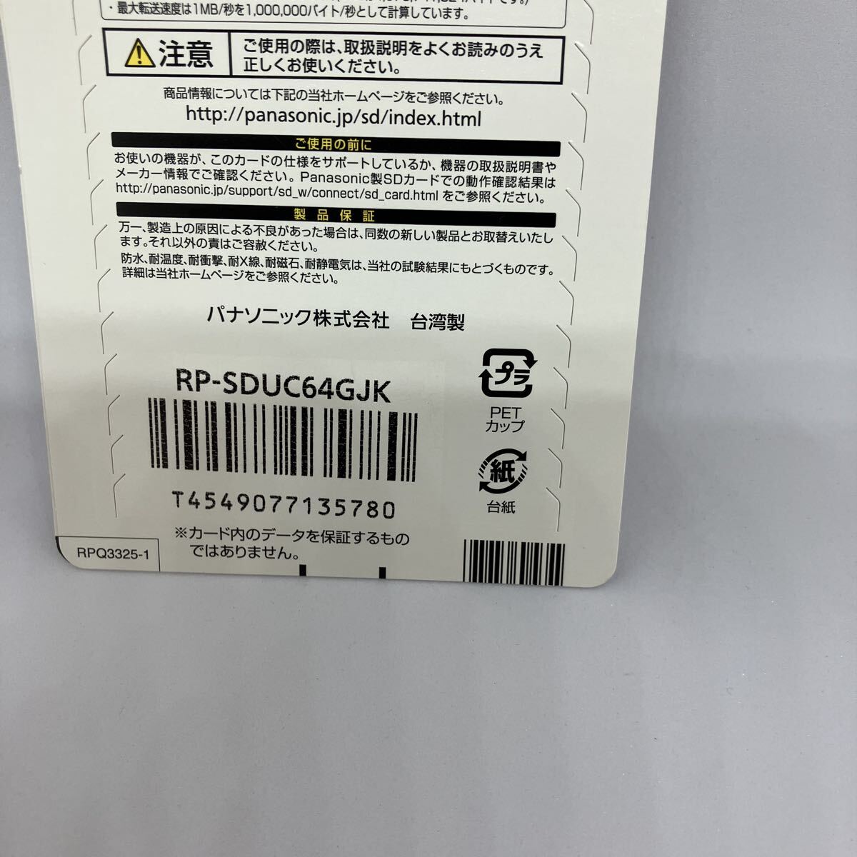 【未開封品】Panasonic SDXC 64GB Premium UHS-I U3 Class10 4K動画対応 RP-SDUC64GJK パナソニック 耐水/耐衝撃/耐温度/耐静電気/X線