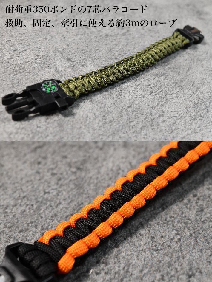 ブレスレット バングル メンズ レディース サバイバル パラコード 笛付き サバゲー ミリタリー 7992495 E 新品 1円 スタート