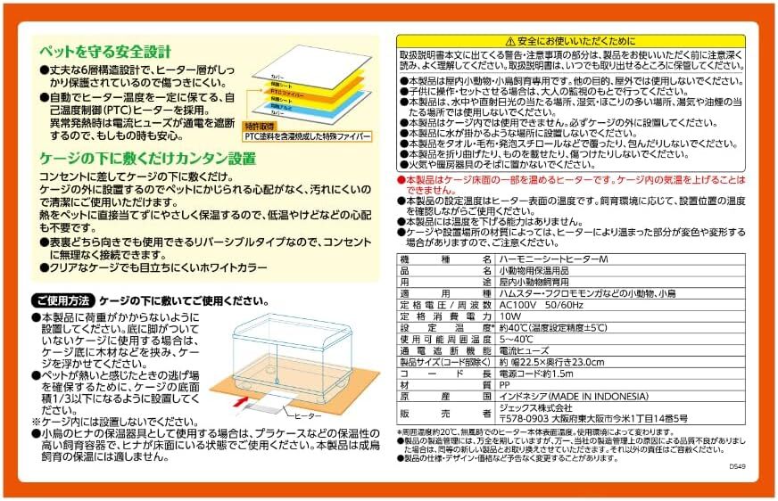 【ケージの下に敷くだけ簡単設置】コンセントに差してケージの下に敷くだけのカンタン設置。ケージの外に設置するのでペットにかじられる心配がなく、汚れにくいので清潔にご使用いただけます。熱をペットに直接当てずにやさしく保温するので、低温やけどなどの心配も不要です。