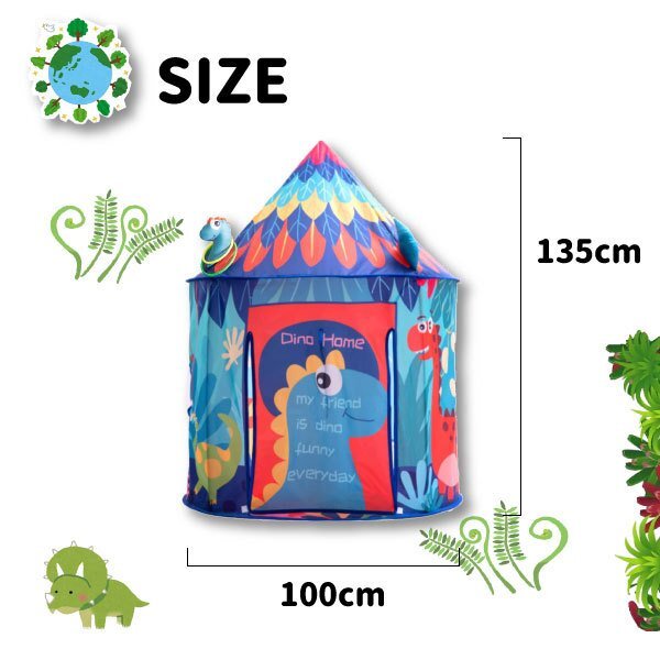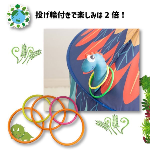 | ☆恐竜 トレジャーハウス キッズテント 【商品名】 恐竜 トレジャーハウス キッズテント 【素材】 ロッド:グラスファイバー 生地:210Tポリエステル 【サイズ】 直径100cm 高さ135cm 【付属品】 ■輪投げリング ■収納袋 【この商品の特徴】 ◆恐竜時代にタイムスリップ!探検気分が味わえるキッズテントが登場です♪ ◆秘密基地にして自分だけの楽しい空間で遊べるプレイテントです。 ◆投げ輪付きでプラスアルファの遊び方もできちゃう★ ◆安全設計でお子様もママも安心! ◆メッシュ素材なので暑さ対策! ◆折りたたみもできてコンパクト!。収納、携帯に便利な専用バッグ付きです! | ||||