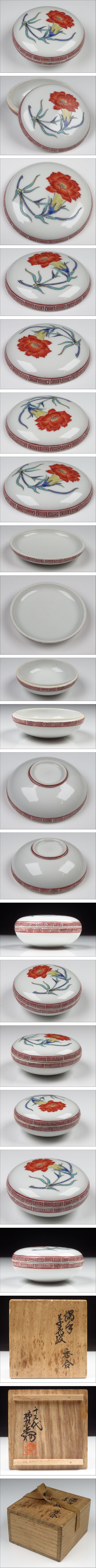 | 【SAKURAYA】希少な本人作品【濁手 草花文香合/人間国宝 十三代 酒井田柿右衛門】有田焼 香道具 茶道具 作家 共箱 骨董品 直径6.8cm | ||