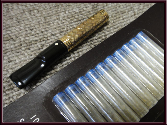 かなり昔のことで記憶が定かではありませんが、お店の方にマウスピースの材質は「エボナイト」と聞いたように思います。
