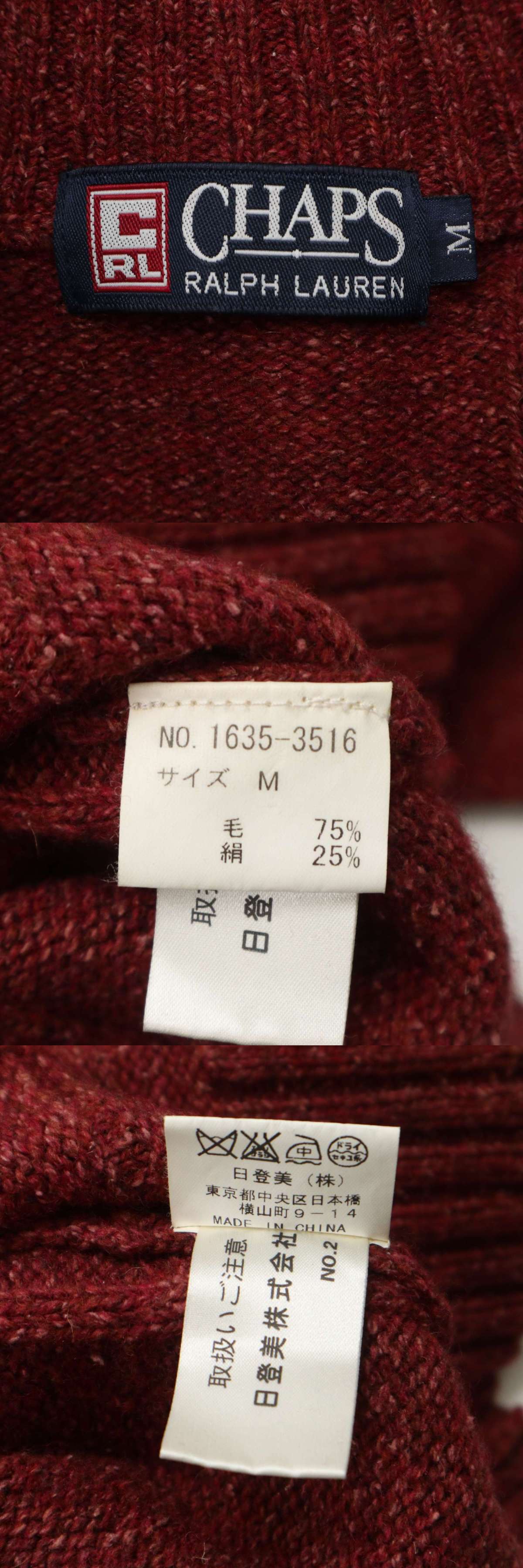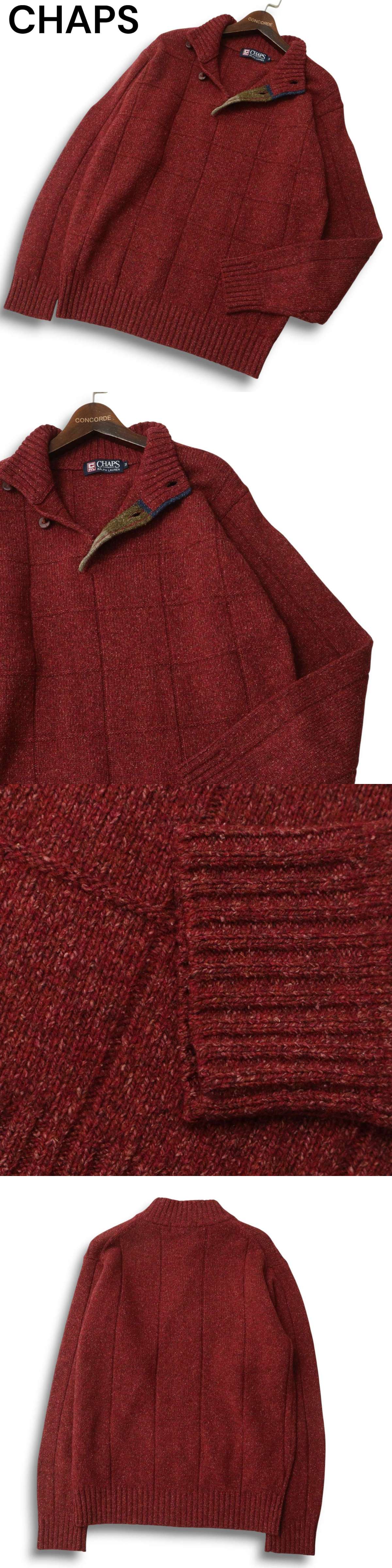 CHAPS チャップス ラルフローレン 秋冬★ 絹 シルク混 ウール 格子柄 チェック セーター ニット Sz.M メンズ