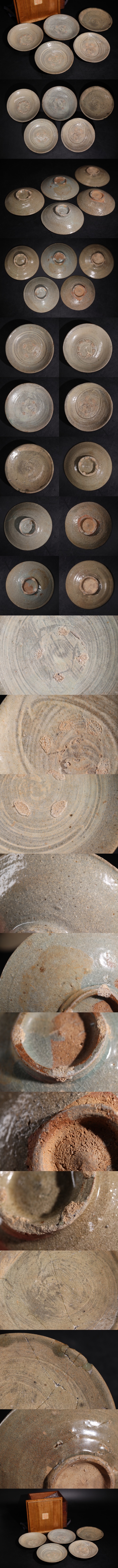 | 時代 李朝 粉青沙器 刷毛目 皿 五客 木箱付 / 朝鮮古美術 煎茶道具 検索: 鶏龍山 古唐津 奥高麗 .G3152 |