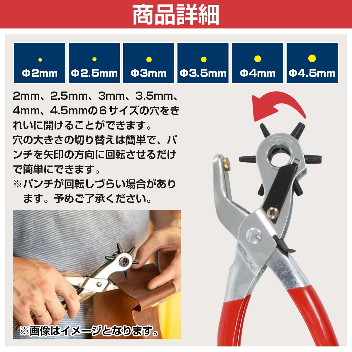 6段階 2mm/2.5mm/3mm/3.5mm/4mm/4.5mm 穴あけパンチ レザークラフト ハンディタイプ 穴あけ機 回転式 穴あけポンチ 革 革細工 便利グッズ