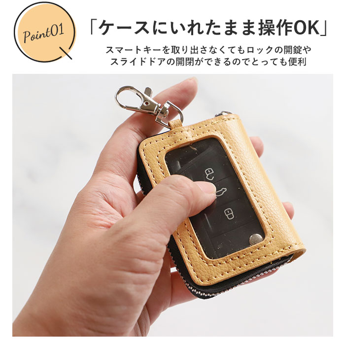 | 注意点 | ※スマートキーの紛失を防ぐため、本品内側のリングにスマートキーを取り付けて使用してください。 ※スマートキーと通常の鍵を一緒に収納すると、スマートキーに傷が付いたり、破損する恐れがあるため、おやめください。 ※小さいサイズのスマートキーを収納する場合は、本品内側のゴムベルトに、スマートキーを通してご使用いただくと、スマートキーが安定します。 ※使用する前に、きちんと装着されているか、本品が破損していないか確認してください。 ※過度な力で引っ張ると破損の原因となりますので、注意してください。 ※紛失を防ぐため、バッグの中やポケットの中に収納してご使用ください。 ※使用状況によっては、素材の特性上、時間の経過とともに空気中の湿気や紫外線等により劣化します。未使用のまま収納していても劣化を防ぐことはできません。 ※素材の特性上、水分が付着すると劣化が早まる可能性がありますので、水気には注意してください。濡れた場合は速やかに水分を拭き取ってください。 ※雨や水滴で濡れた状態での使用、および濡れたままの長時間の放置は、色移り、色落ちの可能性がありますので注意してください。 ※ウィンドウ部分は、素材の特性上、プリント製品等と長時間触れさせると色移りする場合がありますので注意してください。 ※本製品は摩擦により色落ちする可能性がありますので注意してください。 ※本品は洗濯は出来ません。汚れた時は水、または中性洗剤をつけた布をかたく絞り拭いてください。 ※カメラやモニターの性質により、画像と実物の色の違いがある場合がございますのでご理解願います。 |