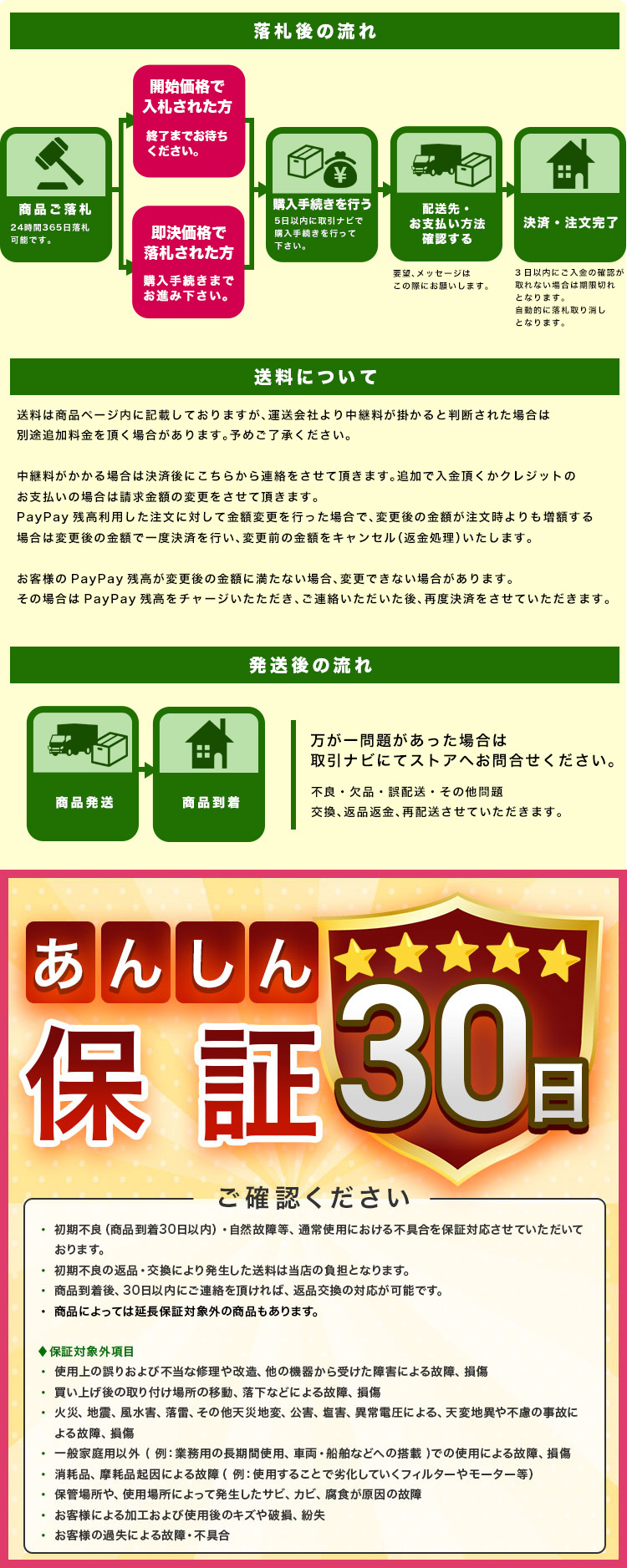5. 对超大、超重的物品,请先了解我们的物流说明或咨询日本客服,以免因误解而给您造成损失!