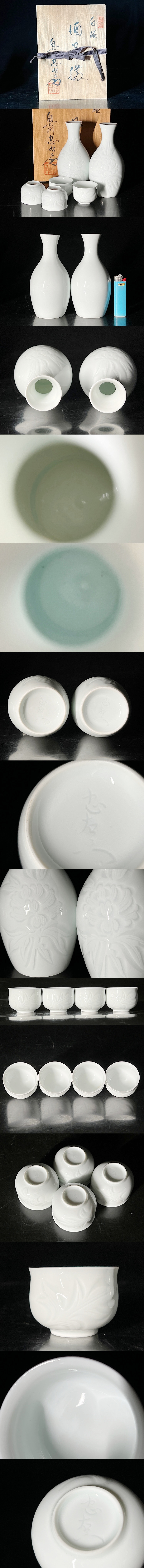 奥川忠右衛門 作 白磁牡丹彫文 酒器6点 共箱 ◆商品詳細 寸法(約):徳利:14.8x8.3x3.2(高×幅×口径cm) 御猪口:3.7x4.9x4.7(高×幅×口径cm) ※寸法に若干の誤差が生じる場合もございます。 少し汚れがありますので、 ご承知の上入札お願いします。 状態等画像にてご確認の上ご入札よろしくお願いいたします。 ◆発送先等のご連絡とお支払いについて ※発送先等のご連絡 落札時から48時間以内にお願い致します。 ※お支払 かんたん決済の期限内にお願い致します。 複数点落札時にまとめて取引の場合(72時間内)に、 まとめて取引の取引手順(落札者方の操作)を参考にお願い致します。 梱包したサイズを測って、地方によって送料を決めますので、よろしくお願いします。 ◆掲載画像について ※画像は現物を撮影しておりますが、照度、遮光、モニターによっては実物と 色目が異なって見えることがありますのでご注意ください。掲載画像では確認 できない傷や汚れがある可能性もございます、あくまで 中古品であるということをご承知の上、御入札をお願い致します。 ◆補償について 商品到着後はすぐに状態の確認をお願い致します。 商品の破損等がございまし たら、箱や梱包材など全てそのままの状態で保存し、お早めにご連絡ください。 (到着日から一週間以上経過、梱包材の廃棄済み等の場合、保証は致しかねます のでご注意ください。) ◆返品について 思っていたイメージと違う、などのお客様主観による返品はお受けできません ので、予めご了承ください。ノークレーム、ノーリターンでお願いします。届 いた商品が商品説明と著しく異なる場合(寸法、キズ記載ミスなど)のみ承り ます。早めにご連絡ください。 ◆注意事項 当方の希望価格と隔たりがある場合は、終了前にやむなく取下げさせて頂く場 合がございます。 ※商品ご落札翌日から4日間以内にご連絡が取れない場合は、入札取消の処置を 取らさせていただく場合がございます。 ※評価の悪い方は取り消す場合がございます。 ※原則として当方の不備以外のキャンセル・返品・返金は受け付けておりません。 以上の点を予めご了承頂いた上で、入札・落札お願い致します。 ◆発送方法 ▼ゆうパック(補償あり/追跡あり) 梱包後のサイズ:~約80cm ※送料全国一律1200円 (但し北海道、沖縄、離島は+500円いただきます。) 発送元は静岡県となります。 ( 商品の組み合わせによっては同梱をお断りさせていただく場合があります。) ※大型商品について 郵便局の規定を超える商品の場合は、佐川急便またはヤマトでの発送となります。 |