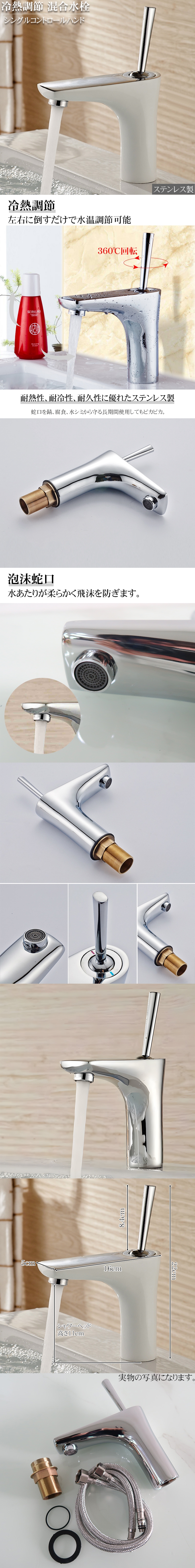 ![]() 【耐久性と高品質】 本製品は高品質ステンレス鋼素材を採用し、長期間使用でも錆びやすくならなくて耐久性も優れています。 【冷熱調節】 左右に回すだけで水温調節可能です。 【泡沫蛇口】 水あたりが柔らかく飛沫を防ぎます。 【セット内容】 蛇口x1 お湯、給水ホースx1 取り付け部品(固定用ナットパッキン) 【商品詳細】 取り付け穴のサイズ約32-40mm 蛇口コネクター G1/2 19.3mm カラー:シルバー 重さ(約):900g サイズ:高さ22cm、横16cm、シャワーヘッド高さ11cm 設置タイプ:デッキ取付 ハンドルの数:シングルハンドル 取付用の穴:シングルホール 蛇口ボディ素材:ステンレス スプレーヘッド材料: ABS プラスチック材料 ※説明書は付属しておりません。 ※取り付けサポートは行っておりません。 |