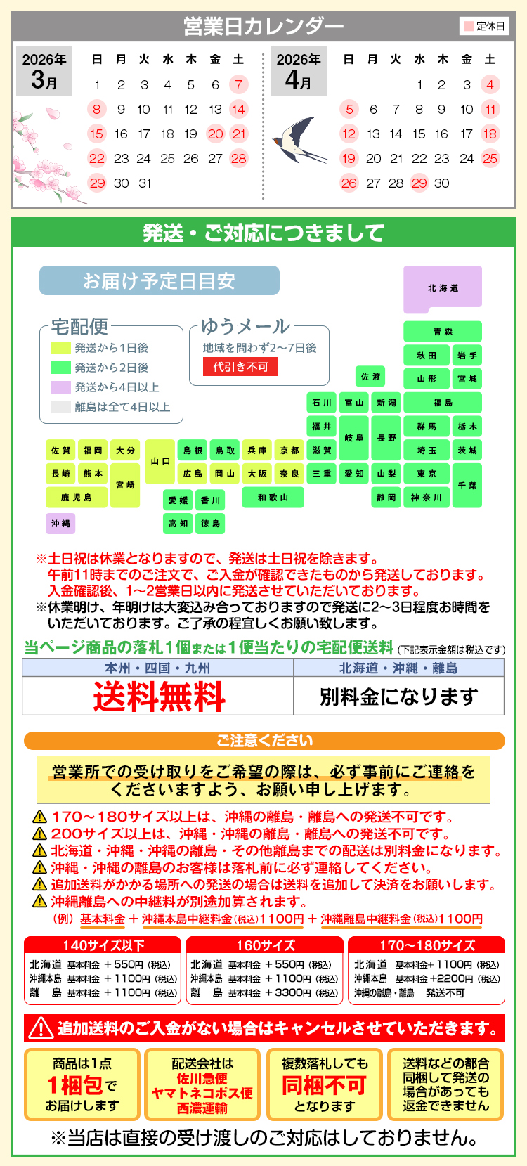Ⅲ.多件同捆打包的,总重量超过15KG时,需增收300日元/箱打包费。
