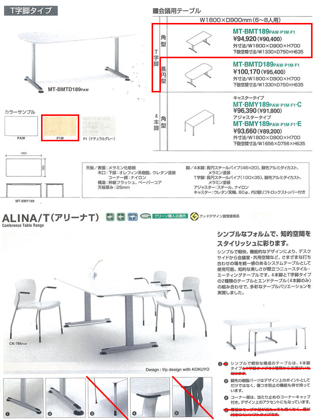 | メーカー・型式 | コクヨ / アリーナT (パーツ品番:MTT-BM1891M) | |