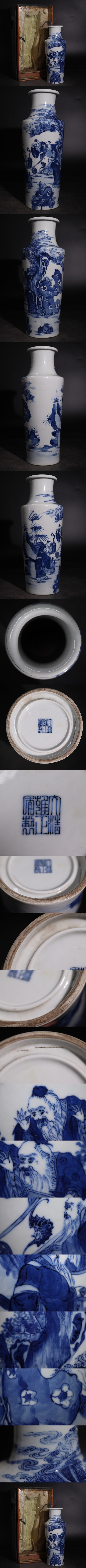| 大清乾正年製 底款 染付 人物 ・ 風景図 花瓶 箱付 / 清 乾正 中国美術 花器 壺 煎茶飾 .G3518 |