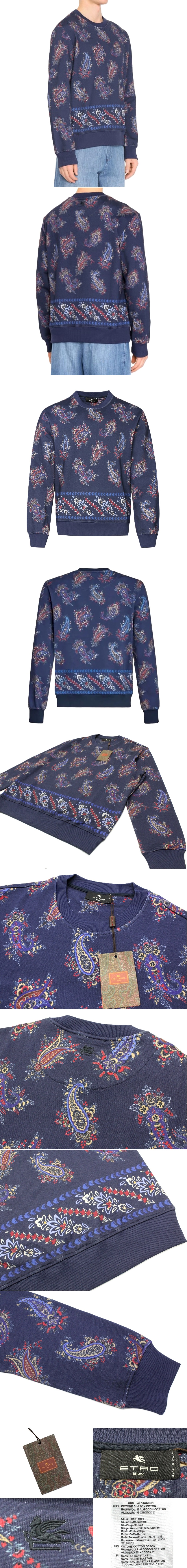 18万新品◆XXL◆エトロジャパン【 ETRO】ペイズリープリントコットンスウェットトレーナーネイビー紺