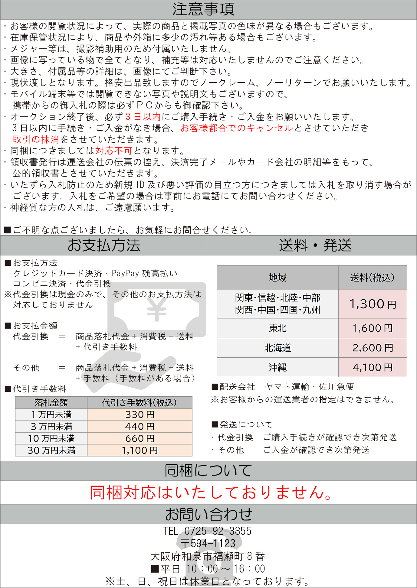 Ⅵ.弃标也必须全额支付该拍品(成交价+消费税+银行转账费+日本邮费+代购费)。