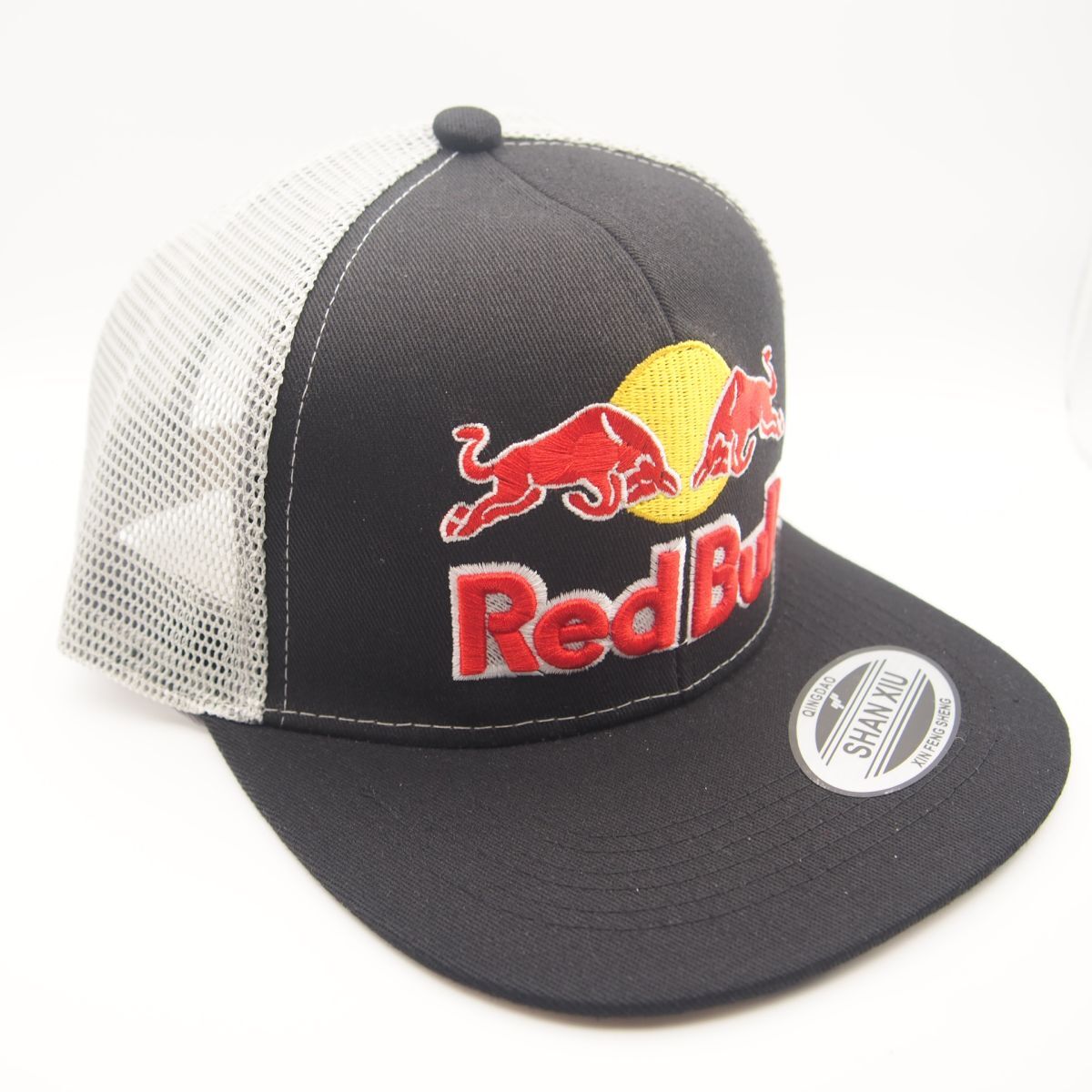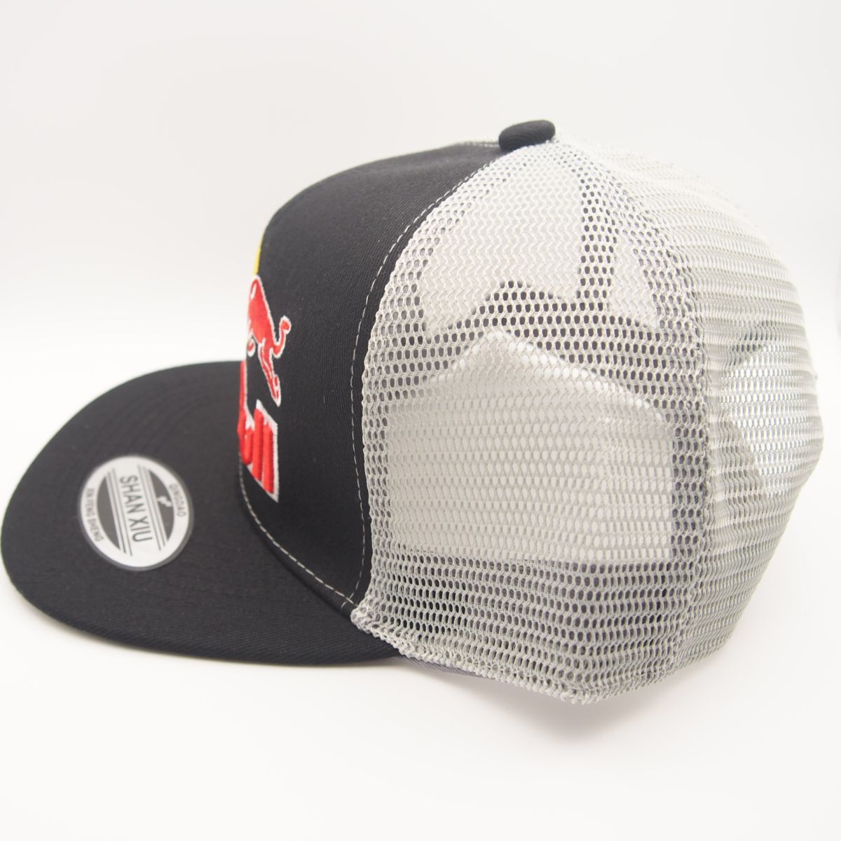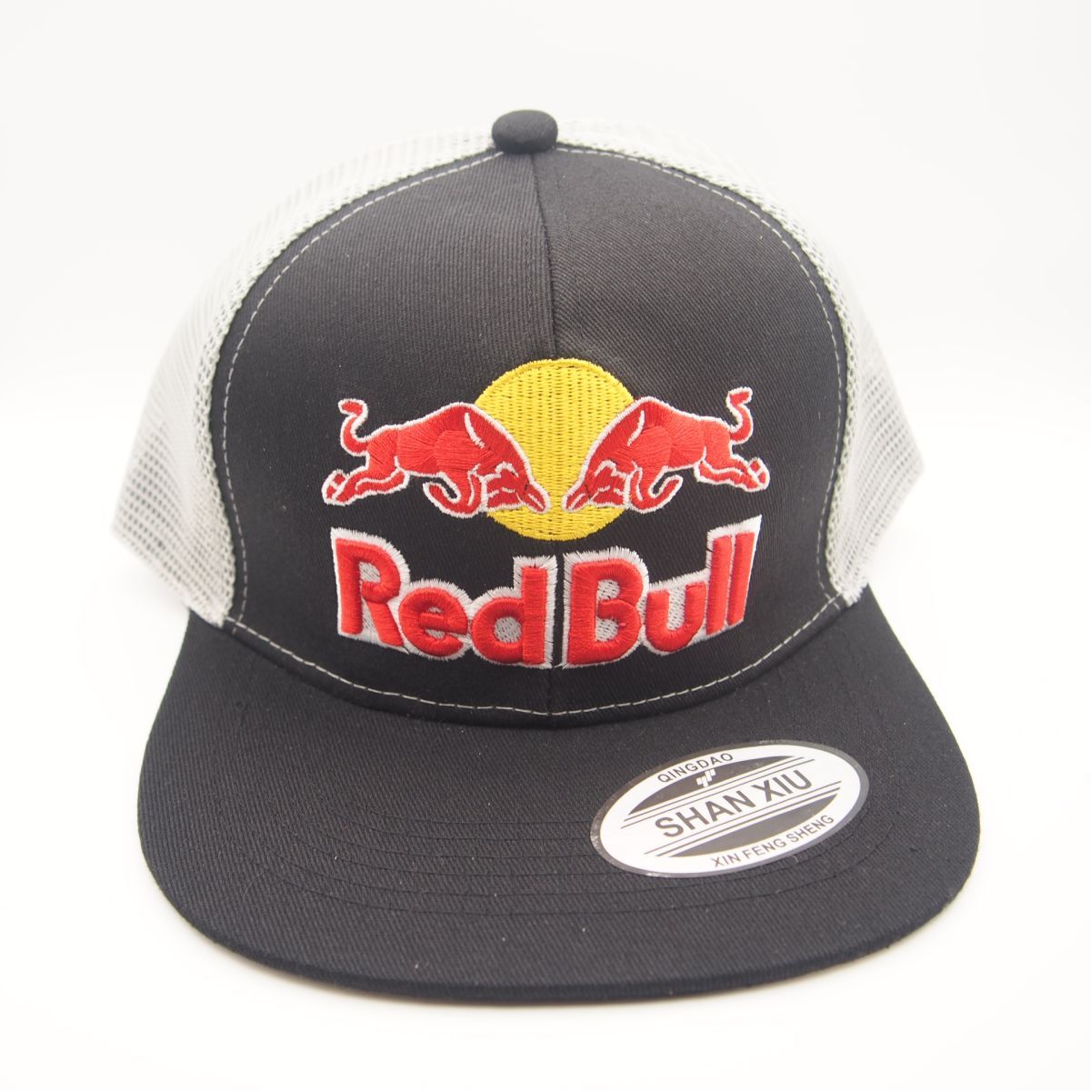 【新品・送料無料】109 黒/グレー/メッシュ/直ツバ REDBULL 刺繍 キャップ