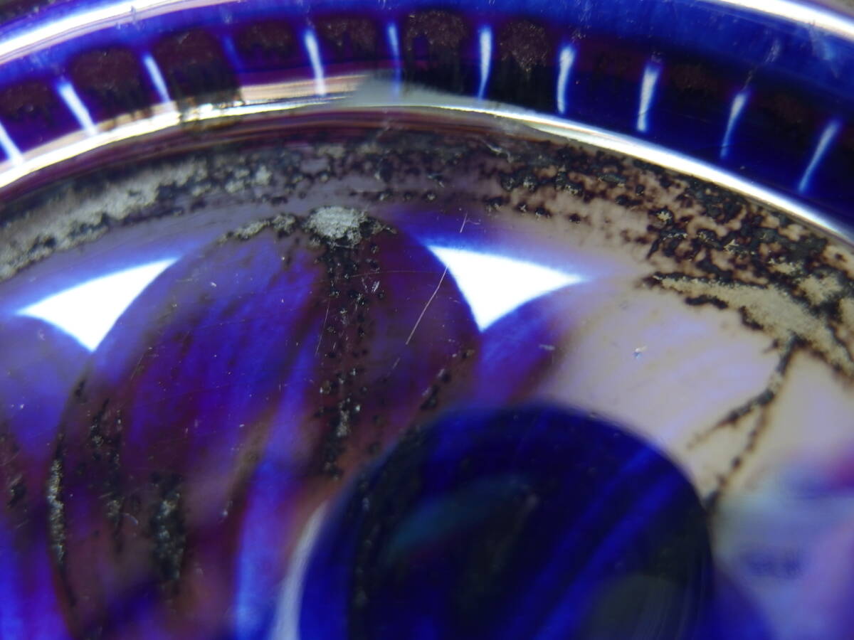 全体的にカンニュウあり。カトラリー跡が見られ、使用感は少しありますが全体的にとても艶やかです。裏面に支柱跡とインク飛びあり。