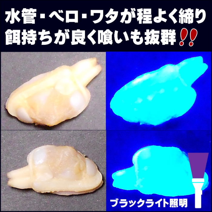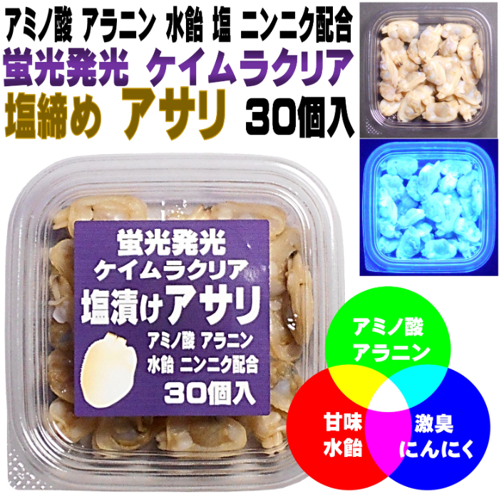カワハギ 仕掛け アサリ 釣りエサ 刺し餌 アミノ酸アラニン・激臭ニンニク・水飴配合 蛍光発光 ケイムラクリア 塩締め アサリ 30個入り
