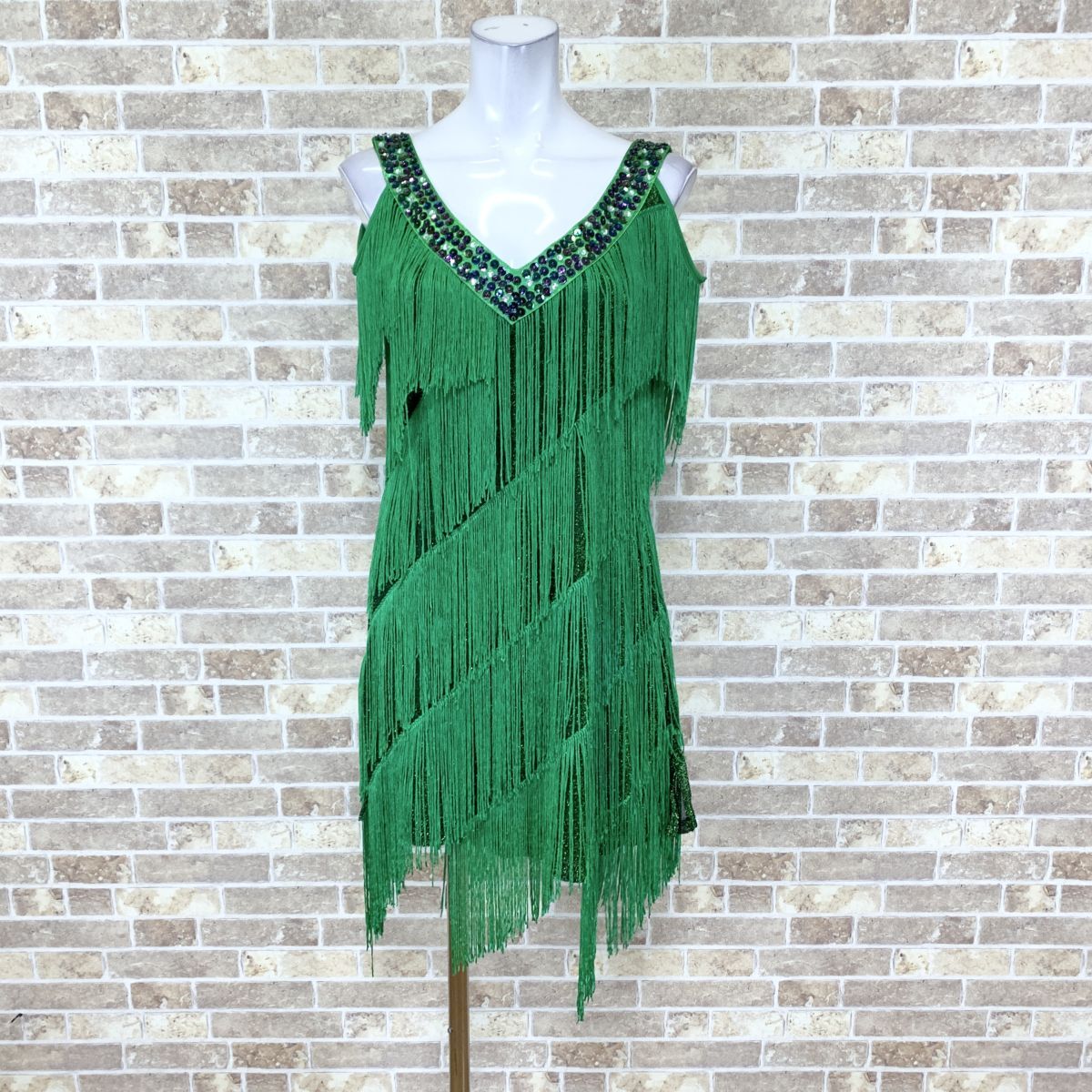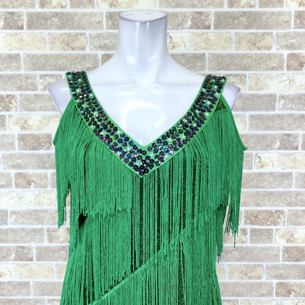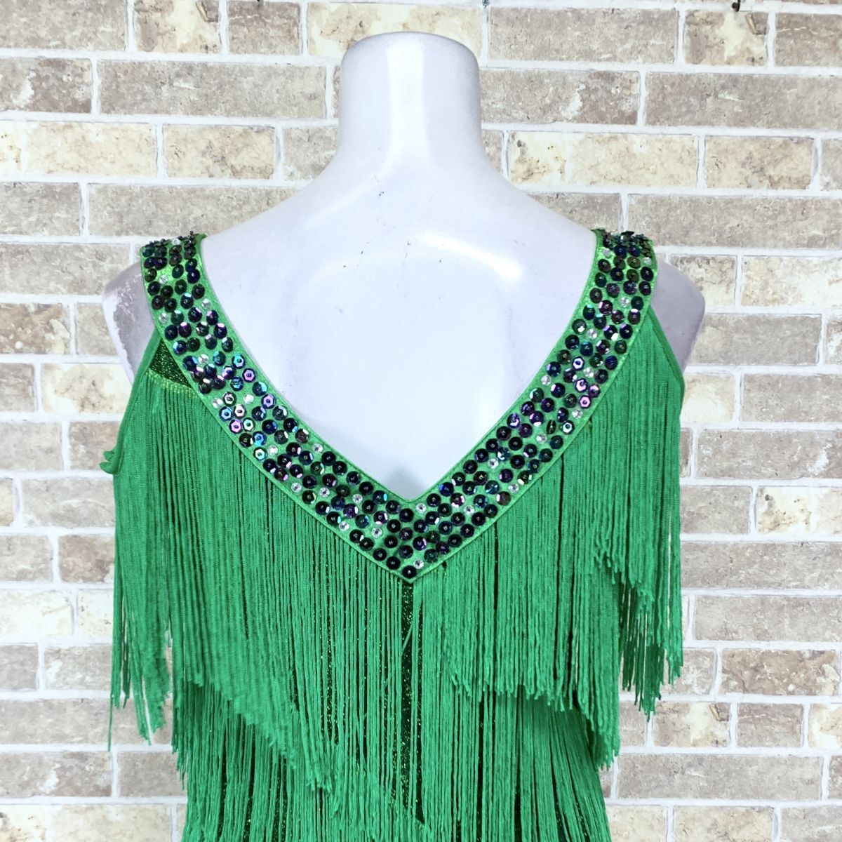 1円 社交ダンスドレス Leirena 緑系 ダンス衣装ドレス カラードレス  発表会 舞台衣装 イベント 中古17046