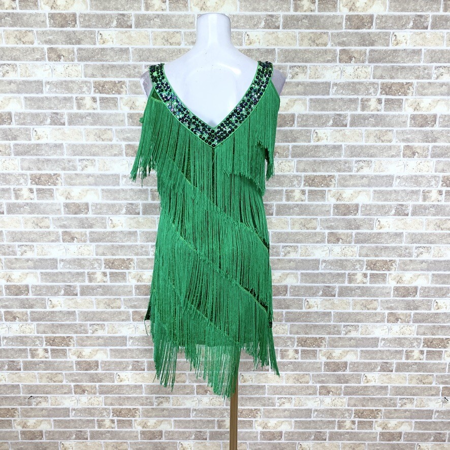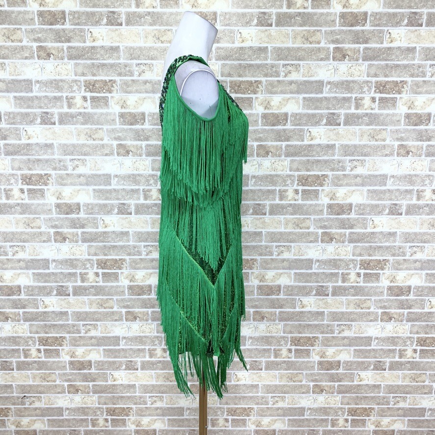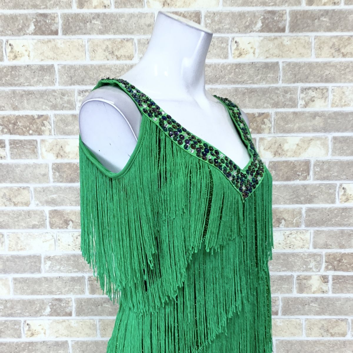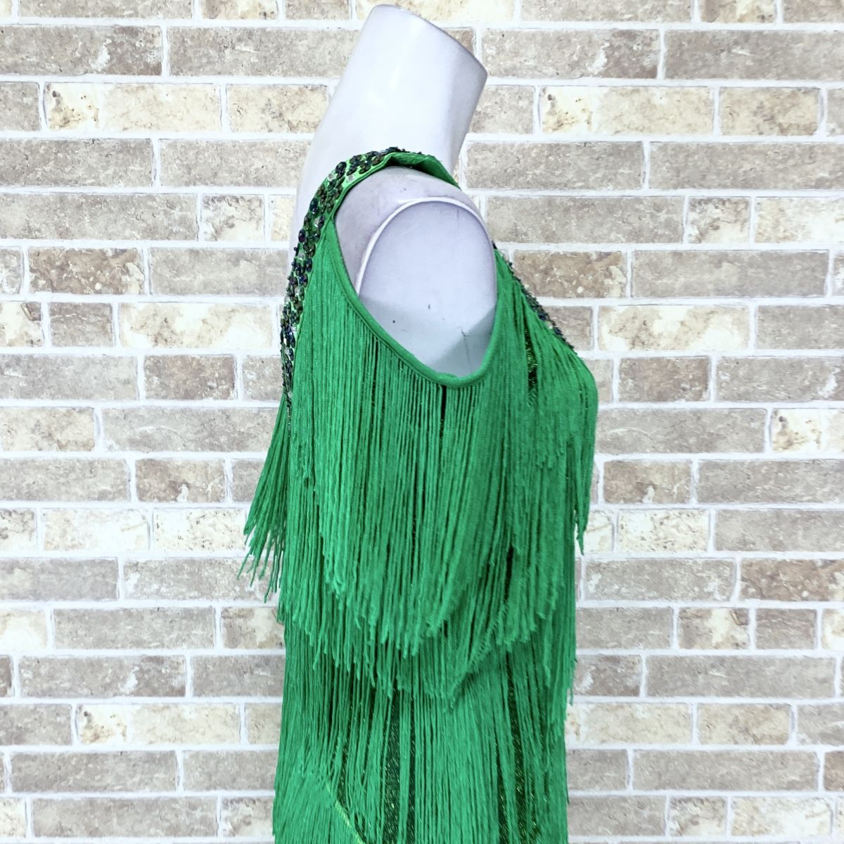 1円 社交ダンスドレス Leirena 緑系 ダンス衣装ドレス カラードレス  発表会 舞台衣装 イベント 中古17046