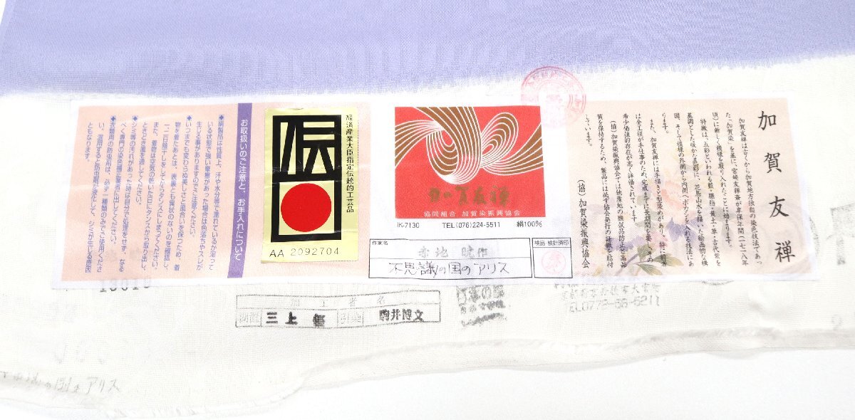 | ◆タイトル◆ | 和遊館 EHK597 夏物 加賀友禅 赤池暁 紋紗織 付下げ 着尺不思議の国のアリス |
