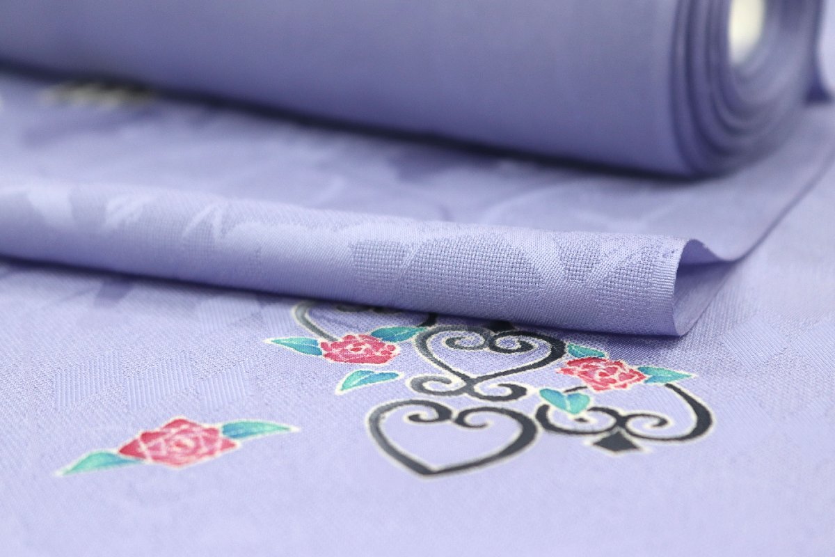 さらりとした透け感のある紋紗織の生地は、青藤色のお色目でございます。 |