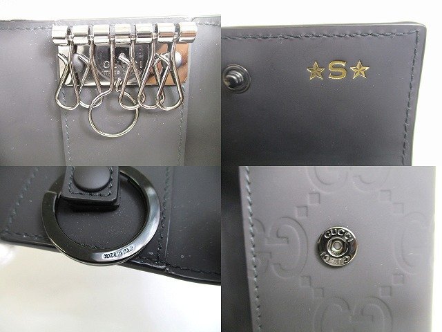 a657 【未使用保管品】 GUCCI グッチ GG ラバーエフェクト 6連 キーケース キーリング メンズ レディース 未使用保管品の為とても綺麗なお品です(新品同様の状態ですが、未開封の新品ではないので一見わかりにくい些細な傷や汚れは御了承くださいませ。) 【ブランド】GUCCI 【カラー】黒 【素材】ラバーエフェクト 【サイズ】約7cm×約11cm 奥行き:約3cm ※あくまでも実寸なので多少の誤差はあるかもしれませんのでご了承ください。 【参考定価】53,900円 【製造刻印】- 【型番】771312 【機能】キーリング×6 【付属品】保存袋 【商品状態 】A ランク |