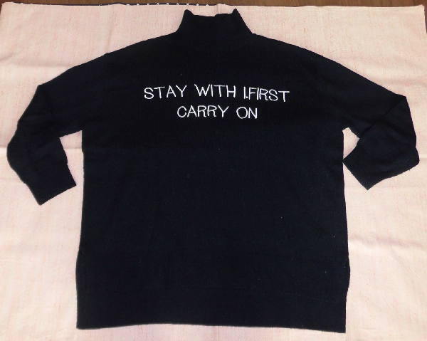 | よく着用しましたので、全体的に毛玉が多いです。 それ以外は比較的キレイです。 ☆ サイズは160 ☆ 色は紺 ☆ 実寸は、身丈58~66センチ、後身頃が少し長いデザイン ☆ アクリル100%、薄手 ☆ 前身頃は刺しゅう入り ☆ ハイネック ☆ 両スソにスリット入り | ||